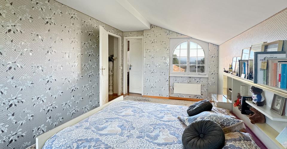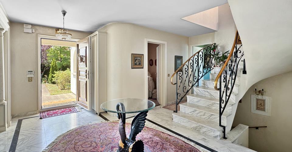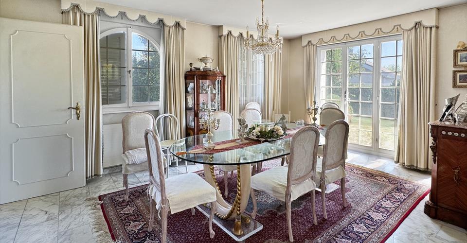 Située sur une parcelle magnifiquement arborée de près de 1’400 m2, cette spacieuse villa individuelle offre de vastes espaces de vie sur trois niveaux, 250 m2 habitables et environ 300 m2 utiles. Véritable bijou, à même de séduire les parents de famille nombreuse, elle se trouve à proximité de toutes les commodités, école internationale, autoroute et aéroport de Genève. Son rez-de-chaussée se compose de la façon suivante : Un hall d’entrée accueillant avec ses hauts plafonds accentuant, dès la porte franchie, le charme et l’élégance de la demeure. Un grand salon, attenant à la salle à manger, parfait pour les moments de convivialité, en famille ou entre amis. La cuisine, fonctionnelle, habitable et bien agencée, disposant d’un accès direct au jardin. Un bureau vous offre un espace calme pour le travail à domicile. Une grande chambre parentale avec sa salle de bain et son dressing privatifs complète ce niveau. À l’étage, vous découvrirez deux autres chambres à coucher, une salle de bains et une salle de douche, offrant le confort nécessaire à une famille. Le sous-sol, en plus de ses espaces techniques et du garage, propose deux autres chambres à coucher, une salle de bain ainsi qu’une grande salle de jeux ou pièce polyvalente, qui pourrait être aménagée selon vos besoins (salle de cinéma, salle de sport, etc.). La maison, nécessitant quelques rénovations et rafraîchissements, est en excellent état structurel. Cette villa est non seulement idéale pour une grande famille grâce à ses cinq chambres, mais elle se prête également parfaitement à des acheteurs ayant une jeune fille au pair ou recevant fréquemment des visites. N’hésitez pas à demander plus d’informations et venez visiter dès maintenant ce bien d’exception en vous laissant séduire par son charme et sa situation privilégiée.