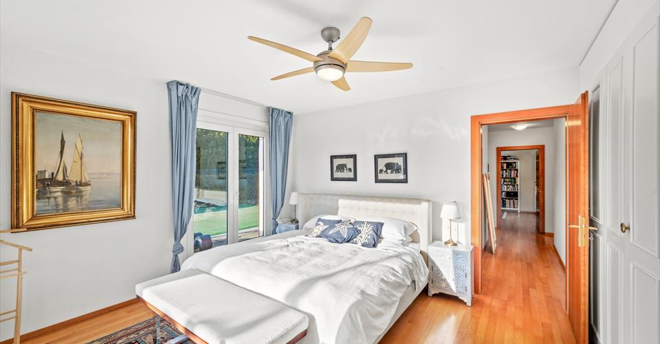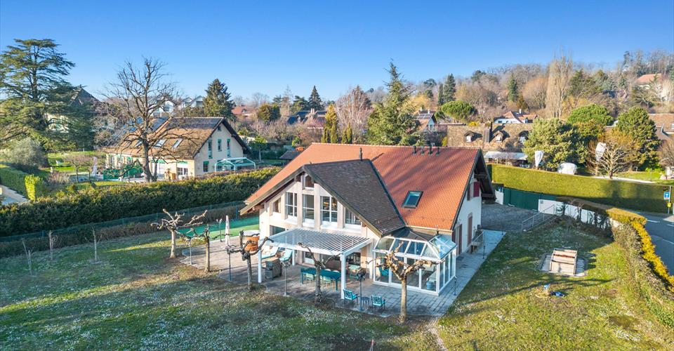 Idéalement située dans un quartier résidentiel calme, à quelques minutes de Lausanne, cette magnifique propriété offre un cadre de vie paisible et pratique. À proximité immédiate des transports, des écoles internationales et des infrastructures sportives et de loisirs, elle combine confort et accessibilité. Construite en 1994 et récemment rénovée (travaux réalisés depuis 2022), cette maison spacieuse et lumineuse se distingue par ses généreux volumes et ses espaces de vie conviviaux. Avec son grand jardin de plus de 2’300 m², vous profiterez pleinement des journées ensoleillées grâce à une grande terrasse orientée plein sud, garantissant calme et intimité. La propriété s’étend sur deux niveaux, avec un sous-sol aménagé, pour une surface habitable de 344 m² et une surface utile de 474 m². Au rez-de-chaussée, la partie jour se compose d’un vaste salon ouvert sur le jardin, offrant une luminosité exceptionnelle, ainsi qu’une cuisine entièrement équipée. Ce niveau comprend également deux chambres, une salle de bains, un WC visiteurs, et un accès direct au garage couvert pour deux voitures. À l’étage, vous trouverez une mezzanine spacieuse pouvant servir de salon ou de bureau, qui dessert quatre grandes chambres et deux salles de bains. Le sous-sol, parfaitement aménagé, offre un salon avec cheminée, une buanderie, une cave à vin, une pièce de rangement, un sauna avec douche et WC, un carnotzet avec cheminée et kitchenette, ainsi qu’un local technique. Les extérieurs disposent de plusieurs places de parking pour accueillir vos invités. Une propriété d’exception, idéale pour une famille recherchant à la fois confort, tranquillité et proximité de Lausanne.