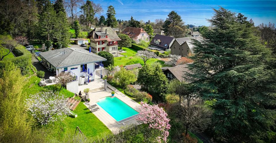 Rockwell Properties vous présente en exclusivité Erigée en 2003 sur une belle parcelle de plus de 2500m2 située sur un chemin sans issue, cette belle propriété d’environ 370m2 offre de grands espaces intérieurs et extérieurs ainsi qu’une distribution idéale également pour une grande famille. Avec sa triple orientation la luminosité est optimale tout au long de la journée. Elle se trouve à proximité des commerces du centre de Chailly, de l’Ecole Nouvelle ainsi que du CHUV. L’ installation d’un ascenseur est envisageable, son emplacement a été prévu lors de la construction. Quelques mots-clés: Proche ENSR & CHUV Belles échappées lac et montagnes Construction de qualité Distribution fonctionnelle Tranquillité Piscine chauffée (PAC) Distribution pratique sur trois niveaux Rez inférieur: Hall d’entrée avec espace de rangement Garage double avec accès direct Pièce de 21m2 avec possibilité de créer un studio indépendant. Abri PC Cave Grande buanderie fonctionnelle Rez supérieur: 6 chambres de 16,5m² chacune 3 salles de bains Étage: Superbe suite parentale de 36m² avec dressing et salle de bain privative Vaste séjour (cheminée) et salle-à-manger de près de 70m2 Cuisine ouverte avec cellier fermé et accès extérieur WC visiteurs Deux terrasses d’environ 40m² offrant une vue dégagée Extérieurs: Piscine chauffée (PAC) Four à pizza Local technique, rangement et espace dédié à la piscine Douche & toilette Places parc