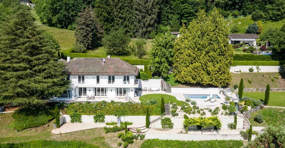Orientée sud-ouest, la propriété bénéficie d’une vue panoramique à couper le souffle sur le lac Léman et les majestueuses montagnes environnantes. Construite en 1967 sur un vaste terrain de 4’552 m2, cette spacieuse maison de 8.5 pièces offre environ 280 m2 habitables, répartis sur deux niveaux aux volumes généreux. Le rez-de-chaussée supérieur comprend 6 chambres lumineuses ainsi que 2 salles de bains, tandis que le rez-de-chaussée inférieur propose une grande cuisine, une salle à manger, un séjour avec cheminée donnant accès à de superbes terrasses extérieures, un WC visiteurs et une buanderie. En parfait état d’entretien, cette villa séduit également par ses extérieurs : un grand jardin arboré, plusieurs terrasses, un balcon, une splendide piscine et une dépendance offrant un intéressant potentiel de transformation. Un garage double complète ce bien d’exception.