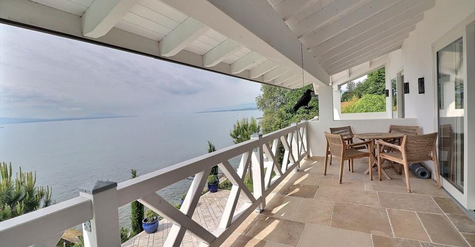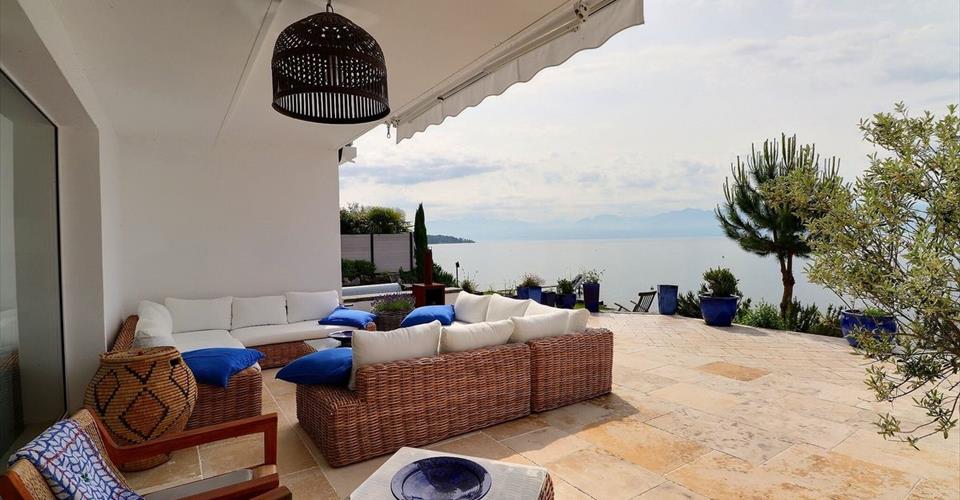 A Perroy, aux portes de Rolle, cette villa exceptionnelle avec accès directe au Lac, vous charmera. Grâce à son emplacement unique, elle offre une vue inégalée sur le Lac, souvent agrémentée du célèbre jet d’eau de Genève, en arrière plan. Dotée de son propre ponton et d’un garage à bateau, cette propriété incarne le luxe au bord de l’eau. La villa bénéficie de grandes baies vitrées qui ouvrent les pièces sur le Lac et inonde la maison de lumière naturelle. Ses diverses terrasses, celles orientées sur le lac et d’autres plus à l’abri du soleil, permettent de profiter du jardin ainsi que du lac en permanence. Elle utilise la géothermie, panneaux photovoltaïque. Elle se présente ainsi : Entrée menant à un bureau, un salon privé, puis un salon ouvert sur la cuisine. Les larges ouvertures offrent la luminosité du lac. Accès aux terrasses extérieures depuis cet étage À l’étage : 3 chambres à coucher 1 suite parentale 2 salles de bain un dressing une antichambre balcons surplombant le lac Au sous-sol : Local technique et espace de rangement À l’extérieur : piscine en acier inoxydable jardin aménagé grande terrasse accès direct sur le lac garage privé à bateau ponton privé garage à voiture Atelier privé Année de transformation : 2020 Système de chauffage : géothermie Panneaux photovoltaïques Merci de contacter Loïse, LD Immobilier pour de plus amples informations et/ou pour organiser une visite