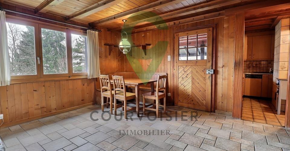 Perché aux Pléiades, sur les hauteurs pittoresques de Blonay, ce chalet familial d’exception représente une opportunité rare sur le marché. Actuellement divisé en deux logements distincts et entouré d’un grand jardin aménagé sur plusieurs niveaux, il conjugue harmonieusement tranquillité et confort tout en restant proche des rives du lac. Orientée vers les Rochers de Naye, cette résidence traditionnelle offre un cadre de vie bucolique et une situation géographique idéale. S’étendant sur trois niveaux, la propriété se compose comme suit : Au rez-de-chaussée Un spacieux espace de vie comprenant une cuisine ouverte et une salle à manger Un salon lumineux avec cheminée, propice à la détente Deux chambres confortables donnant sur le jardin Un WC avec douche Au premier étage Une salle à manger conviviale, reliée à une cuisine habitable Une chambre orientée vers le jardin côté ouest Un salon avec cheminée, créant une atmosphère chaleureuse Une première salle de bain équipée d’une baignoire et de WC Une seconde salle de bain avec douche et WC Les combles Deux petites chambres bénéficiant d’une vue sur l’est Deux galetas, idéaux pour un espace de rangement supplémentaire La propriété dispose de trois places de parking, dont une située à proximité immédiate du chalet pour faciliter le déchargement des marchandises et un garage séparé d’env. 15m2. À l’extérieur, un barbecue et un abri de jardin viennent complètent les prestations proposées. Actuellement divisé en deux logements indépendants, ce chalet offre la possibilité d’être réuni en une seule grande demeure, offrant ainsi une configuration modulable, idéale pour un rendement locatif ou pour une résidence familiale.