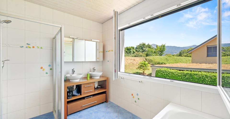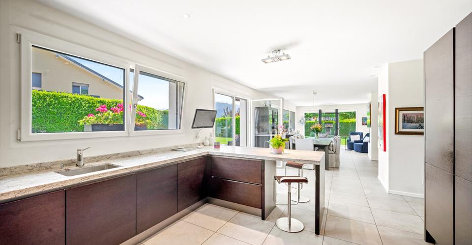 Construite en 2010, cette élégante propriété contemporaine se situe dans un quartier résidentiel calme et privilégié. À proximité immédiate des commerces, des transports publics (arrêt de train) et des principaux axes autoroutiers, elle offre un cadre de vie idéal pour une famille. Édifiée sur une parcelle entièrement clôturée de 1’686 m², la villa dispose d’une grande terrasse parfaitement exposée, propice à la détente et aux moments de convivialité, à l’abri des regards. Baignée de lumière grâce à son orientation optimale, cette demeure séduit par ses volumes généreux et ses espaces lumineux. Elle offre une surface habitable de 240 m² répartis sur deux niveaux : À l’étage : quatre belles chambres, idéales pour accueillir famille et invités. Au rez-de-chaussée : de grands espaces de réception, une cuisine ouverte entièrement équipée, ainsi qu’un bureau, parfait pour le télétravail. En complément, un vaste sous-sol aménagé ajoute une grande polyvalence d’usage (salle de jeux, home cinéma, espace fitness, etc.). Enfin, un couvert pour deux véhicules complète les prestations de ce bien très agréable à vivre, alliant confort, fonctionnalité et qualité de vie.