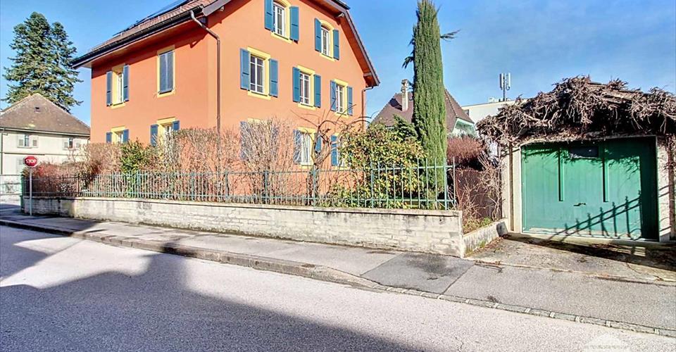 RESERVE ! Située dans un quartier recherché, cette cossue maison de 1925 se compose de deux logements de 3,5 et 4,5 pièces, offrant également des combles aménageables, un vaste sous-sol, ainsi que de nombreuses possibilités d’aménagement. Le logement du rez-de-chaussée supérieur, actuellement loué, est en bon état, tandis que celui de l’étage, doté d’un beau volume, nécessite des travaux de rénovation. Les combles, déjà partiellement aménagés, permettent d’envisager des espaces supplémentaires selon les besoins. La maison est équipée d’une pompe à chaleur et de panneaux photovoltaïques installés en 2024. La toiture et les façades ont récemment été rénovées. À l’extérieur, un jardin privatif joliment arboré, orienté Est-Sud-Ouest, offre un cadre agréable. Un garage extérieur et des espaces de rangement viennent compléter l’ensemble. À deux pas des commerces et des transports, cette propriété représente une belle opportunité pour une famille ou un investisseur souhaitant profiter d’un bien idéalement situé en hyper centre, avec un fort potentiel d’aménagement. A compter du 1er juillet prochain, retrouvez toutes nos annonces exclusivement sur IMMOBILIER.CH, le portail des professionnels romands de l’immobilier
