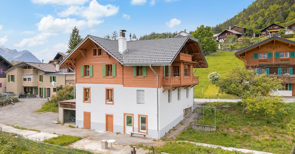 Maison de maître rénovée avec élégance et authenticité Édifiée en 1910, cette maison de maître a fait l’objet d’une rénovation complète en 2024, réalisée avec soin dans le respect des matériaux d’origine et du caractère architectural de l’époque. La propriété se compose de deux logements distincts. Le premier, un appartement de 2.5 pièces situé au rez-de-chaussée, offre une surface de 71 m² et est actuellement loué. Le second, réparti sur le premier étage et les combles, propose une configuration de 5.5 pièces sur 142 m² habitables, auxquels s’ajoutent 45 m² de surface complémentaire dans les combles. Bien que non comptabilisée comme surface habitable, cette dernière est parfaitement exploitable au quotidien. L’ensemble se distingue par des volumes généreux, une belle luminosité et une hauteur sous plafond comprise entre 2.70 m et 2.90 m. Un magnifique jardin soigneusement entretenu confère un charme supplémentaire à cette demeure. Elle dispose également d’un garage box, d’un couvert et de plusieurs places de stationnement extérieures. Le rez inférieur abrite les locaux techniques, la buanderie, les caves et un atelier. Prix de vente maison et les places de parc : CHF 1’390’000.-