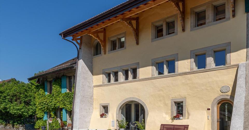 En plein coeur de la Côte Vaudoise, dans le charmant village de Féchy situé à 25 minutes du centre-ville de Genève et 20 de Lausanne, cette superbe bâtisse du XVIème siècle offre un cadre de vie tout à fait exceptionnel. Entièrement rénovée en 2023 par ses actuels propriétaires et disposant d’une très confortable surface habitable d’environ 370 m2, elle se compose actuellement de deux appartements : Occupant le rez-de-chaussée et le premier étage, un duplex d’environ 270 m2 aux très belles finitions. Il comprend au rez une grande pièce de réception avec cuisine ouverte Bulthaup, une petite terrasse et une salle de douche avec toilettes. À l’étage, un vaste séjour avec espace salle-à-manger, une cuisine Boffi donnant sur une petite cour intérieure, une chambre parentale avec salle de douche en suite, un espace bureau et une chambre supplémentaire. Au deuxième étage, un second appartement d’environ 100 m2 et offrant un vaste séjour, une cuisine Bulthaup, deux belles chambres à coucher et une salle de bain complète. Les combles qui comprennent actuellement une buanderie ainsi qu’un local technique pourraient aisément être transformés en chambres supplémentaires ou troisième logement. L’ensemble dispose d’un beau jardin de 500 m2 longé par un ruisseau, d’un petit établi ainsi que d’une terrasse couverte permettant ainsi de profiter des soirées d’été. Un garage double en enfilade ainsi qu’un espace devant ce dernier permettent de garer aisément plusieurs véhicules. Opportunité rare de par ses grands volumes et sa situation paisible, ce bien unique offrira diverses possibilités : maison familiale, bureaux et habitation ou objet de rendement. À découvrir sans tarder.