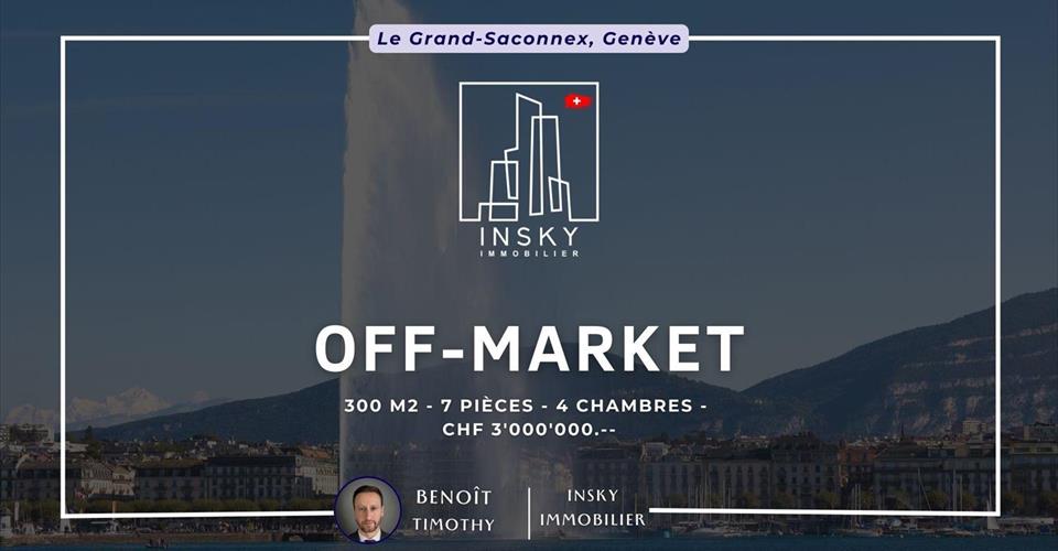 Nous avons le plaisir de vous présenter, en toute discrétion, cette propriété d’exception située sur la charmante commune de Cointrin. Une occasion rare de devenir propriétaire d’un bien d’exception avant sa mise sur le marché. Cette maison de 7 pièces, construite sur une parcelle généreuse d’environ 1’800 m², offre un cadre de vie idyllique à l’abri des regards. Sa surface habitable de 190 m² est optimisée pour le confort de toute la famille, tandis que sa surface utile de 300 m² offre de nombreuses possibilités d’aménagement. Le rez-de-chaussée, baigné de lumière, se compose d’un vaste espace de vie et d’une cuisine moderne et entièrement équipée. L’étage supérieur distribue 3 chambres spacieuses, 3 salles de bains et un bureau, idéal pour le télétravail. La propriété est équipée d’un système de chauffage au gaz. – Type de bien : Maison individuelle – Prix : 3’000’000.- – Surface habitable : 190 m² – Surface utile : 300 m² – Terrain : 1’800 m² – Nombre de pièces : 7 – Chambres : 3 – Salles de bains : 3 – Bureau : 1 – Chauffage : Gaz Pour plus d’informations ou pour organiser une visite, veuillez contacter M. Timothy BENOIT à ou par téléphone We are delighted to present, in complete discretion, this exceptional property located in the charming town of Cointrin. A rare opportunity to become the owner of an exceptional property before it is put on the market. This 7-room house, built on a generous plot of approximately 1’800 m², offers an idyllic living environment away from prying eyes. Its 190 m² of living space is optimized for the comfort of the whole family, while its 300 m² of usable space offers numerous possibilities for conversion. The light-filled ground floor consists of a large living area and a modern, fully equipped kitchen. The upper floor has 3 spacious bedrooms, 3 bathrooms, and an office, ideal for teleworking. The property is equipped with a gas heating system. – Property type: Detached house – Price: 3’000’000.- – Living space: 190 m² – Usable space: 300 m² – Land: 1’800 m² – Number of rooms: 7 – Bedrooms: 3 – Bathrooms: 3 – Office: 1 – Heating: Gas For more information or to arrange a viewing, please contact Mr. Timothy BENOIT at or by phone at