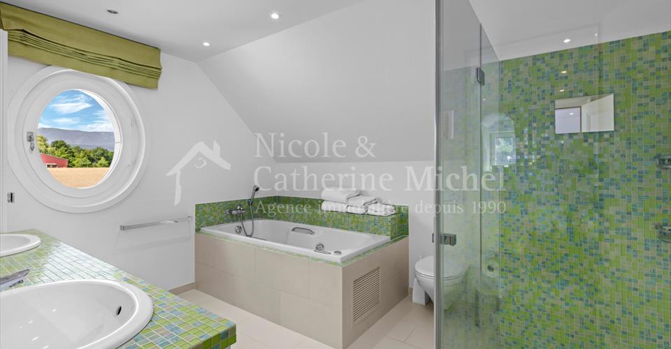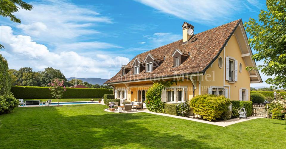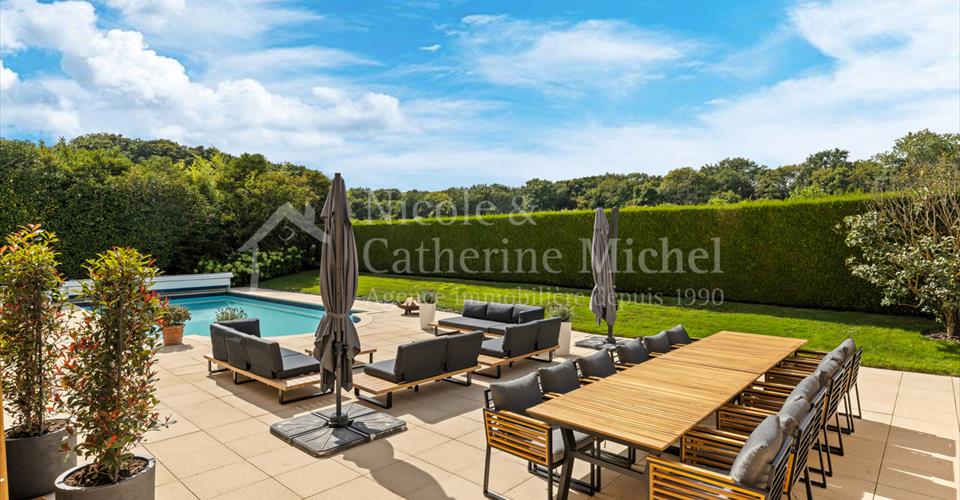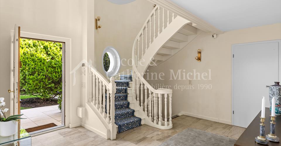 Au cœur de Mies, à deux pas de la forêt de la Bécassière et du centre du village, se cache une villa de caractère qui conjugue élégance et intimité. Érigée au bout d’un chemin privé et entièrement clôturée, elle offre à ses occupants la tranquillité d’un véritable cocon familial. Dès l’entrée, le vaste hall à double hauteur donne le ton : volumes généreux et lumière naturelle rythment les espaces. Le rez-de-chaussée accueille une chaleureuse pièce de vie avec cheminée, ouverte sur le jardin, une salle à manger conviviale ainsi qu’une cuisine familiale donnant sur une grande terrasse ensoleillée orientée à l’ouest. Une chambre avec accès direct au jardin, une salle de douche et un bureau complètent ce niveau, parfait pour recevoir ou télétravailler. À l’étage, la suite parentale de 25 m² séduit par son dressing et sa salle de bains avec baignoire balnéo. Les enfants y trouvent également leur bonheur : trois chambres, dont une en duplex avec salle de douche privative et accès au grenier, offrent à chacun son espace. Le sous-sol réserve de belles surprises : salle de jeux ou home cinéma, espace bien-être avec sauna, buanderie fonctionnelle avec chute à linge, cave et locaux techniques, sans oublier un accès indépendant. À l’extérieur, la vie s’organise autour d’une piscine chauffée de 50 m², d’une terrasse dallée propice aux repas d’été et d’un jardin soigneusement entretenu, protégé des regards. Barbecue, cabane de jardin et plusieurs places de stationnement complètent l’ensemble. Enfin, la maison bénéficie d’équipements modernes : alarme avec détecteurs, chauffage au sol au mazout (chaudière récente) et arrosage automatique. Cette villa bourgeoise combine avec harmonie le charme d’une demeure familiale et le confort d’équipements haut de gamme, offrant un lieu de vie unique où chaque membre de la famille trouvera sa place.