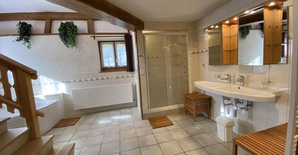 Ancienne ferme entièrement rénovée sise au centre de Villars, à proximité des commerces, de la piscine et des bains thermaux. Elle comprend un appartement de 2.5 pièces au rez-de chaussée, un logement de 4 chambres sur trois étages et un studio. L’accés est facile tout au long de l’année. DESCRIPTION : CHALET DE 3 APPARTEMENTS Logement de 4 chambres Premier étage : Entrée Cuisine entièrement équipée ouverte sur la salle à manger et porte-fenêtre menant au balcon Sud-Ouest Coin bar – escalier pour l’étage salle de billard – escalier menant au rez-de-chaussée Rez-de-chaussée : Salon avec cheminée – baies-vitrées menant à la terrasse – jardin Sud-Est Sauna, salle de bain avec douche, salle de repos avec baies-vitrées menant au jardin Ouest et au jacuzzi extèrieur Hall d’entrée et WC visiteurs et penderie Accés au galetas – salle de gym équipée Studio : indépendant avec dressing – salle de bain avec douche-cuisine entièrement équipée et porte-fenêtre menant à la terrasse Ouest au rez-de-chaussée Second étage : Salle de bain avec jacuzzi en angle et douche communicante avec la chambre en duplex – fenêtre Sud Chambre avec fenêtres Sud-Ouest attenante à la salle de bain avec douche et communicante avec la chambre Chambre attenante à la salle de bain avec douche avec porte-fenêtre menant au balcon Sud Appartement de 2.5 pièces au rez-de-chaussée : Séjour avec porte-fenêtre Sud Cuisine équipée Salle de bain avec baignoire Chambre double avec porte fenêtre menant sur la terrasse Sud Couvert à voiture Ce document n’a aucune valeur contractuelle, les informations présentées ne sont données qu’à titre indicatif et ne font pas office de contrat.