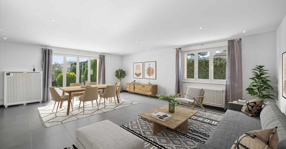 Au coeur de la charmante commune de Veyrier, cette villa offre une généreuse surface habitable, et profite d’un environnement calme et paisible sans vis-à-vis, bénéficiant d’une orientation idéale avec une exposition plein sud vue sur le Salève. Elle est distribuée sur 3 niveaux avec 5 chambres dont une master avec salle de douche attenante, deux salles d’eau supplémentaires, une cuisine agencée et équipée semi-ouverte sur le salon, d’un local technique ainsi que de plusieurs annexes. L’extérieur se compose d’une cour intérieure avec un garage couvert pour deux voitures, d’une terrasse avec un jardin paysagé et arboré de nombreuses essences dont deux oliviers et d’une piscine avec un bar/poolhouse.