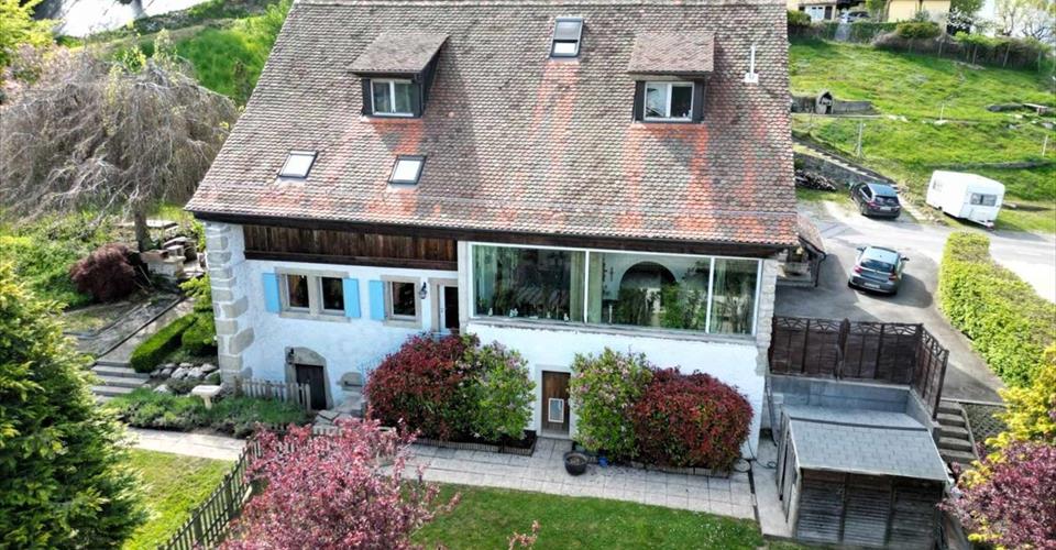 Située au cœur du village de Vucherens, dans un quartier paisible et agréable, cette superbe ferme de 1820 allie avec élégance le charme de l’ancien au confort moderne. Érigée sur une parcelle de 1’003 m², attenante à une seconde parcelle de 1’004 m², cette propriété offre une surface privative totale de 2’007 m². Son volume généreux de 1’921 m³ et sa rénovation complète ont permis d’optimiser les espaces et d’améliorer significativement le confort, en faisant un lieu de vie idéal pour les familles en quête de volumes spacieux et d’une intimité préservée. Après plus d’une année de travaux, le résultat est à la hauteur des attentes : des pièces vastes et lumineuses, un cachet authentique préservé et une magnifique véranda orientée plein sud offrant une vue imprenable sur les montagnes. Un intérieur chaleureux et fonctionnel. L’accès à la maison se fait par plusieurs entrées, dévoilant immédiatement des espaces de vie aménagés avec soin. Depuis le hall, vous découvrirez un premier salon, suivi d’un espace bibliothèque et jeux, ainsi qu’une grande salle à manger ouverte sur un vaste séjour agrémenté d’une majestueuse cheminée. La cuisine traversante, entièrement équipée, séduira les amateurs de gastronomie avec ses espaces confortables et fonctionnels. Elle offre un accès direct à la terrasse couverte et au jardin, parfaits pour les repas en extérieur. Un élégant escalier en pierre mène à l’étage, où se trouvent une spacieuse suite parentale avec dressing et salle de bains, une seconde salle de douche, un bureau, une buanderie ainsi que plusieurs chambres et pièces disponibles. Le dernier étage propose encore deux grandes chambres et plusieurs espaces de rangement. Le sous-sol, quant à lui, dispose d’un superbe carnotzet aménagé dans une cave voûtée, d’un local technique et d’un abri PC offrant un espace de stockage supplémentaire. Le jardin soigneusement entretenu, véritable havre de paix, dispose d’un cabanon, d’un poulailler, d’une terrasse couverte ainsi que d’une fontaine alimentée par une source naturelle. Plusieurs places de stationnement complètent cet ensemble unique.