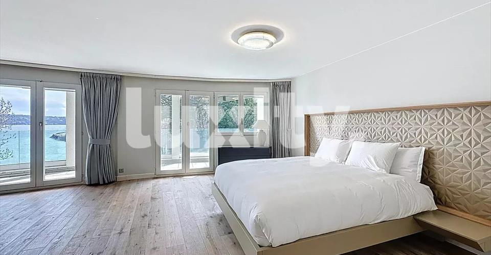 Réf FM490: À louer meublé ou non meublé. Découvrez cette magnifique maison exclusive et privative, offrant un cadre de vie unique avec un ponton privé, un jardin paysagé et une spacieuse terrasse pour profiter pleinement du cadre idyllique. Un intérieur élégant et raffiné : Rez-de-chaussée : – Cuisine entièrement équipée, ouverte sur un vaste séjour lumineux avec cheminée et accès direct au jardin – Toilette visiteurs 1er étage : – Suite parentale avec balcon vue lac, dressing, salle de bain et toilette – Deux chambres, dont une avec salle de douche et toilette – Salle de douche et toilette supplémentaires Sous-sol aménagé : – Une chambre avec salle de bain et toilette – Deux pièces polyvalentes (bureau, salle de jeux, home cinéma?) – Buanderie, cave, local technique – Salle de douche avec toilette Un garage privé complète ce bien exceptionnel. Nichée dans un environnement prestigieux, cette propriété allie élégance, confort et intimité, avec un accès privilégié au lac. Visites sur demande – Luxity.ch