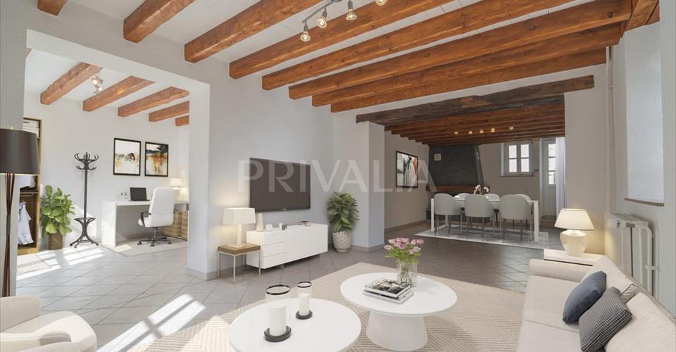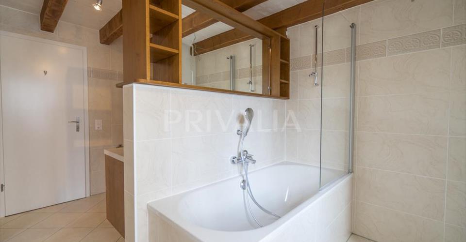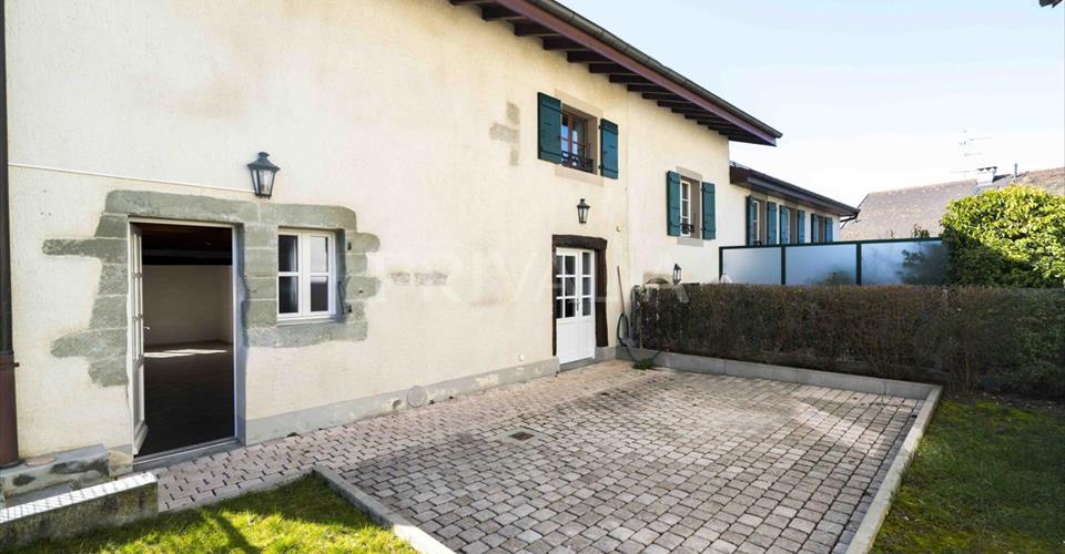 Dans la commune de Bernex, cette charmante maison située en plein coeur du village, offre une surface d’environ 200m2 avec 8 pièces dont 3 chambres à coucher. Cette jolie maison a bénéficié d’une récente rénovation et se distingue par ses prestations à la fois modernes et anciennes qui lui confèrent un réel cachet avec notamment des poutres apparentes, une cuisine équipée actuelle ou encore d’une cheminée fonctionnelle. La propriété se distribue comme suit : Rez de chaussée : – Séjour avec cheminée et accès terrasse – Cuisine équipée et agencée avec accès terrasse – Salle à manger – Petit réduit – WC visiteurs 1er étage : – Chambre parentale avec salle de bains/wc en suite – 2 chambres à coucher – WC avec lave-linge et séche-linge – Salle de douche Combles : – Grande pièce polyvalente – Local technique, chaudière au gaz La propriété bénéficie d’une jolie terrasse avec jardin. Deux places de parking en extérieur complètent ce bel ensemble. Bernex est une commune familiale entourée de domaines viticoles. La maison est située au coeur du village à proximité de l’ensemble des commodités (transports en commun, restaurants, commerces, poste, notamment), à moins de 20 minutes du centre-ville de Genève et à proximité immédiate des axes autoroutiers. L’école primaire du village se situe à quelques minutes de la propriété. De plus, plusieurs connexions de bus et trams sont possibles.