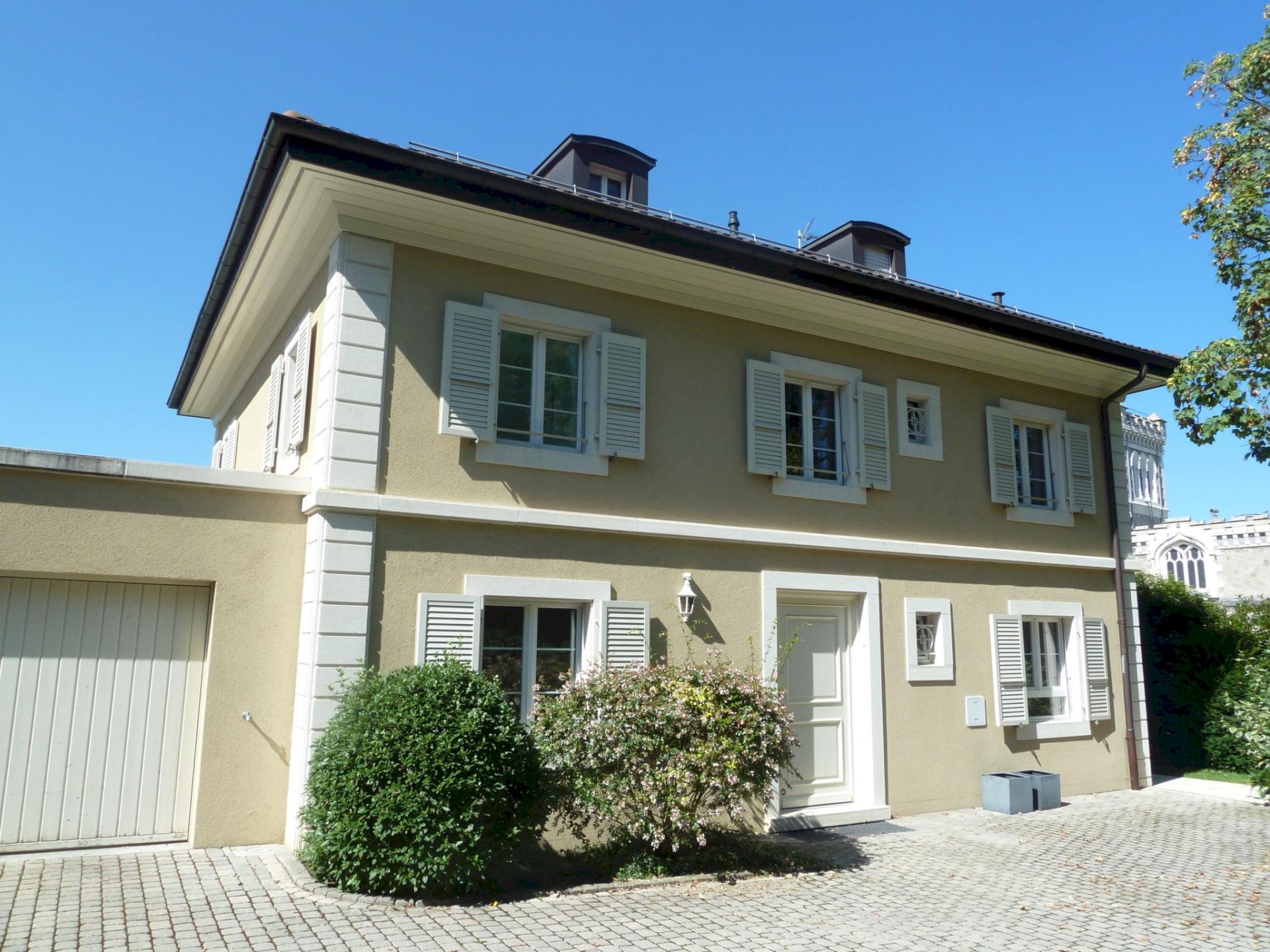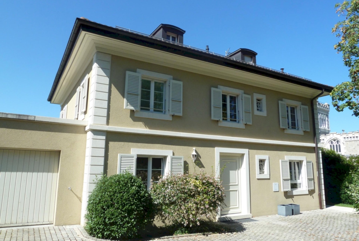 Maison lumineuse proche du Golf Club de Cologny, avec magnifique jardin et terrasse offrant calme et espace.