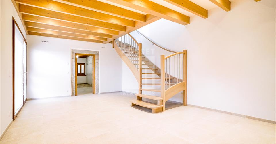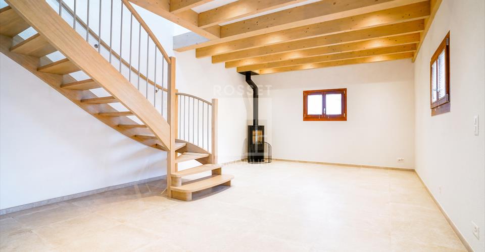 A peine rénovée, cette maison de 8 pièces en campagne offre : Au rez-de-chaussée : trois entrées possibles, côté salon et côté cuisine. On y trouve un grand séjour avec un poêle avec des escaliers donnant accès aux chambres à l’étage, une cuisine entièrement équipée avec petit coin repas, une salle à manger avec des escaliers donnant accès à deux chambres à l’étage, un espace technique et buanderie. A l’étage : se trouvent quatre chambres à coucher et un bureau, et deux salle de douches/ WC A l’extérieur : une terrasse devant la maison est accessible par la cuisine et par le séjour. Un couvert à garage et un jardin privatif à l’arrière du couvert complètent ce bien. NB : Les frais d’eau du jardin sont à charge du propriétaire dans un premier temps.