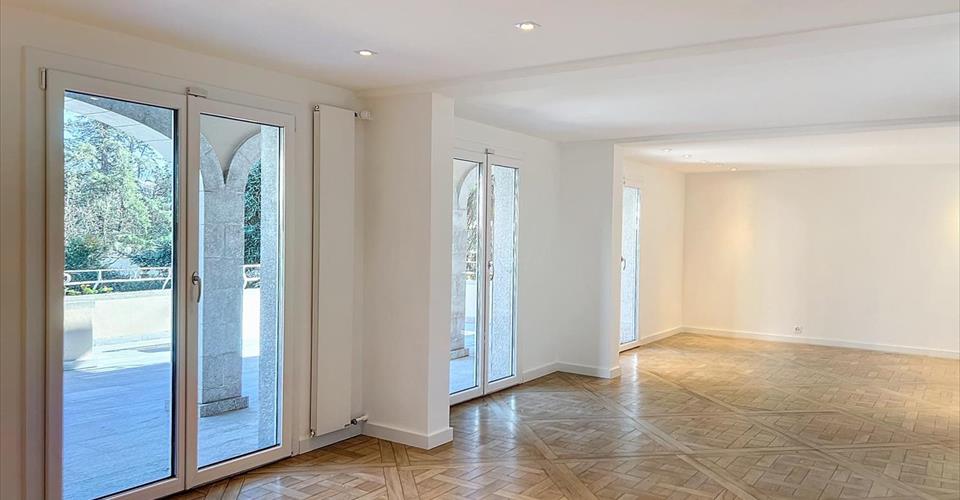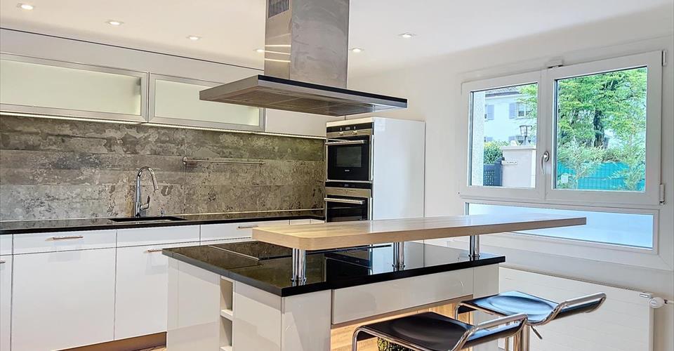 Magnifique maison individuelle de 8 pièces, entièrement rénovée, bénéficiant d’un emplacement idéal dans un quartier résidentiel, calme et très prisé Elle se situe à proximité des transports publics, des écoles publiques et privées, des organisations internationales ainsi que de diverses Missions. Cette villa présente de belles prestations, de généreux et lumineux espaces, de grandes terrasses et un vaste sous-sol. Rez-de-chaussée – Large hall d’entrée, système d’alarme – Cuisine entièrement équipée et ouverte, avec îlot central – Salle à manger – Vaste séjour avec accès terrasse – Une chambre ou un bureau – WC visiteurs, salle de bains et douche Etage – Grand hall desservant les chambres – 4 belles chambres à coucher dont une master avec salle de bains/douche en suite et dressing – Une grande salle de bains avec baignoire, douche et WC Sous-sol – Chambre avec salle de douche et WC – Grande pièce pouvant faire salle de jeux ou salle TV – Buanderie équipée d’un lave-linge et d’un sèche-linge – Grande cave avec casiers à vin – Espace technique (chaufferie) – Un accès direct à l’extérieur Jardin joliment arboré et entièrement clôturé, deux grandes terrasses dont une avec une cuisine extérieure, un espace repas et barbecue. Deux garages avec portes électriques. Portail électrique et système d’alarme. CONDITIONS LOCATIVES Loyer : CHF 18’000.-/mois Charges : Individuelles Contrat d’entretien/jardin : En sus. Taille des arbres par le propriétaire Disponibilité : A convenir