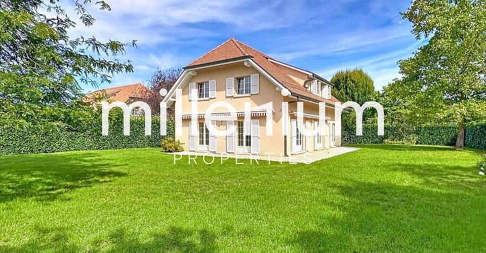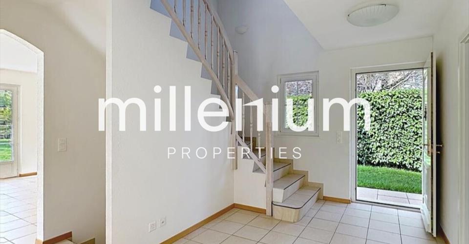 Agence : Millenium Properties SA Réf : LM/KM 2225 Située à Vessy, au cœur d’un quartier résidentiel verdoyant et recherché, cette superbe maison individuelle séduit par ses volumes généreux, son confort moderne et son atmosphère paisible, tout en bénéficiant de la proximité immédiate des transports, commerces et écoles. Rez-de-chaussée : Un hall d’entrée s’ouvre sur un vaste séjour baigné de lumière, agrémenté d’une cheminée, ainsi qu’une cuisine entièrement équipée. Une belle chambre avec salle de bain attenante – idéale pour recevoir ou aménager un bureau – et un WC visiteurs complètent ce niveau. Étage : Une élégante chambre master avec dressing et salle de bain privative, trois chambres lumineuses avec rangements et vue sur le jardin, ainsi qu’une salle de bain attenante offrent un espace nuit fonctionnel et accueillant. Rez-inférieur : Une grande buanderie équipée, une salle de jeux (ou bureau) ainsi qu’un espace de rangement. À l’extérieur, le jardin arboré se déploie sur une belle parcelle et propose deux vastes terrasses, parfaites pour des moments conviviaux en toute tranquillité. Un garage double avec porte automatique ainsi qu’une place de stationnement extérieure viennent parfaire ce bien d’exception. Cette maison se distingue par la qualité de ses prestations, ses volumes généreux et sa luminosité, le tout dans un état irréprochable. Loyer : CHF 7’750 (Entretien de la chaudière et des canalisations inclus) Contact : Kari Marill-Hernandez MILLENIUM PROPERTIES Boulevard du théâtre 5, 1204 Genève https://www.milleniumproperties.ch