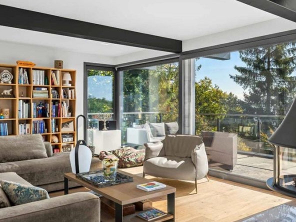 Nichée dans un environnement calme et verdoyant au coeur d’un grand parc, cette propriété de 330m, idéale pour une grande famille. La propriété dispose d’un pavillon d’invités comprenant un appartement de 2.5 pièces ainsi qu’un garage pour 2 voitures. Construite en 1960 et rénovée en 2021, cette propriété saura ravir les amateurs de tranquillité à la recherche d’un lieu très privatif. Le rez-de-chaussée profite d’un généreux hall d’entrée, d’un immense salon salle à manger, ainsi que d’une grande cuisine avec ilot central. L’espace nuit comprend trois chambres à coucher ainsi que deux salles de bains. L’étage, avec son cachet et ses magnifiques poutres apparentes dispose d’un beau dégagement, d’une salle de douche ainsi que de trois chambres à coucher, dont une immense de 53m². Le sous-sol comprend les locaux techniques. Le sous-sol comprend les locaux techniques. La propriété profite d’u pavillon d’invités comprenant un garage pour deux voitures ainsi qu’un appartement de 2.5 pièces à l’étage. Le parc de 13’360 m² jouit d’une très belle vue sur les Alpes et d’un beau dégagement sur le lac. Un pavillon de jardin ainsi qu’une piscine à rénover complètent les extérieurs richement arborés. Lovée dans les collines verdoyantes du district de Morges, Monnaz est une ancienne commune rurale qui incarne le charme typique du vignoble vaudois. Ce petit village est entouré de champs, de vignes et de forêts, et bénéficie d’un cadre naturel paisible, surplombant légèrement la plaine de la Morges.