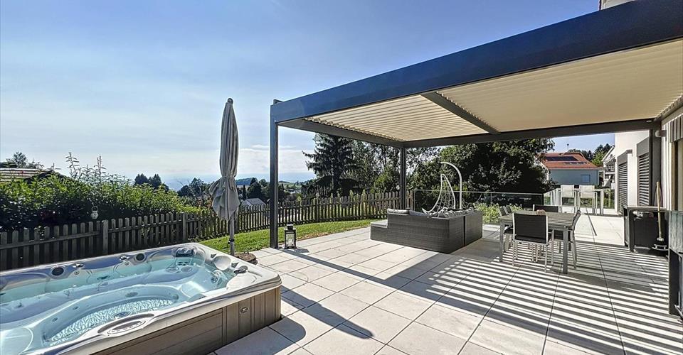 En exclusivité chez Barnes Suisse SA ! Vous rêvez de vivre dans un cadre paisible tout en restant à proximité de toutes les commodités? Cette superbe propriété située dans la charmante commune d’Epalinges est l’opportunité que vous attendiez. C’est au coeur d’un quartier résidentiel, calme et verdoyant, que cette maison individuelle de 9.5 pièces offre un espace de vie confortable et convivial pour toute la famille. Orientée sud-ouest, elle bénéficie d’une vue dégagée sur le lac et les montagnes. Bâtie en 2014 sur une parcelle dominante de plus de 1’000 m², cette magnifique villa propose une surface utile de 390 m² répartis sur quatre niveaux. Spacieuse et lumineuse, elle vous séduira notamment par son design contemporain et ses finitions de qualité. Dotée de grandes fenêtres laissant entrer généreusement la lumière naturelle, elle offre un cadre de vie chaleureux et accueillant à chaque instant de la journée. L’intérieur est moderne et fonctionnel avec un vaste salon/salle à manger pourvu d’une cheminée ainsi qu’une cuisine ouverte et entièrement agencée donnant accès au balcon. A cela, viennent s’ajouter les 6 chambres, lumineuses et bien agencées, et les 4 salles de bains modernes qui apportent un confort absolu. À l’extérieur, un magnifique jardin paysager, un potager et un cabanon vous attendent. Une terrasse spacieuse, pourvue d’un jacuzzi et d’une pergola, offre l’endroit idéal pour des repas en plein air et des moments de détente en famille. De plus, la propriété est équipée de panneaux solaires, de panneaux photovoltaïques et d’une pompe à chaleur ce qui vous permettra de réduire votre empreinte carbone tout en bénéficiant d’une consommation d’énergie plus durable. Elle bénéficie en outre de deux places de parc intérieures ainsi que de plusieurs places de stationnement extérieures.