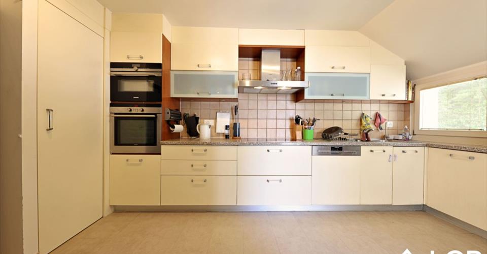 Grande maison d’architecture originale, située en zone villas à 5 minutes à pied du centre du village de Gingins, en bordure d’un petit chemin local séparant la parcelle de la zone agricole. La maison jouit d’un calme absolu et d’une grande intimité, étant préservée des regards extérieurs par des arbres au nord et des haies au sud, à l’ouest et à l’est, avec une belle vue sur la chaîne du Jura. Le village de Gingins est situé à environ 6 km au nord de Nyon et est bien desservi par les transports publics avec une ligne de bus le reliant au Centre Commercial de Signy et à la Gare de Nyon (actuellement 25 liaisons/ jour). Caractéristiques : – Villa individuelle sur parcelle de 2’353 m² – Grande cour d’entrée au nord avec éclairage et portail motorisé – Garage double 33m² (porte motorisée à télécommande) – Jardin d’agrément avec système d’arrosage automatique et piscine extérieure – Un étage sur rez-de-chaussée + sous-sol – Surface utile: 272 m²/ Volume SIA: 1’350 m3 – Surface habitable environ 250 m² – Construite en 1972 et entièrement rénovée en 2004 ? Rez-de-chaussée : – Entrée, couloir – Living – Salle à manger ? Grande cuisine entièrement équipée avec entrée indépendante – Suite parentale avec une grande chambre, salle de bains et bureau – Chambre d’invités indépendante avec salle de bains – Chambre polyvalente ? Etage: – 3 chambres à coucher, dont une avec terrasse – Salle de bains – Combles aménageables ? Sous-sol: – Buanderie – Chaufferie – Cave – Salle de jeux / pièce polyvalente. Des travaux de rafraichissement sont à prévoir. Prix: 2’950’000.-