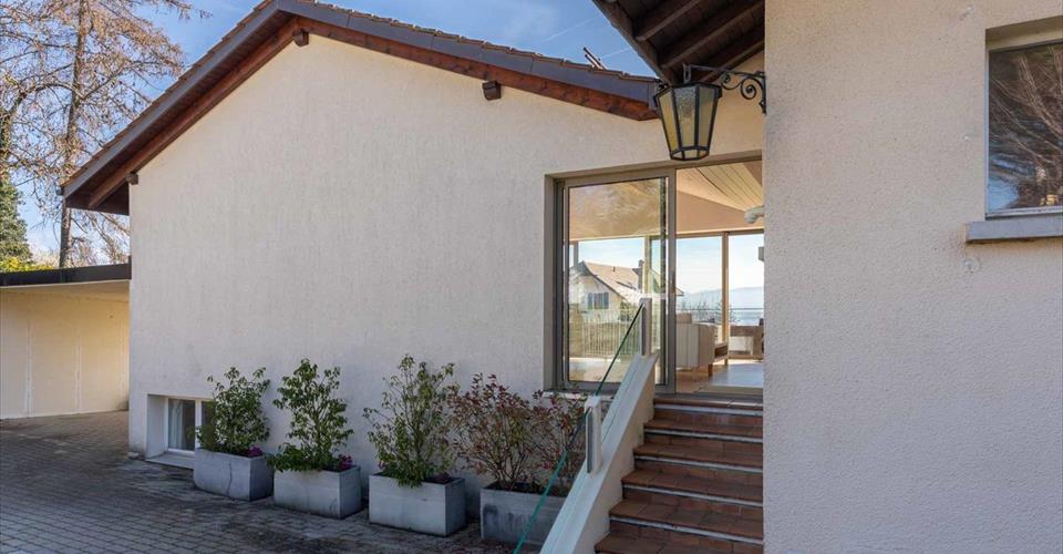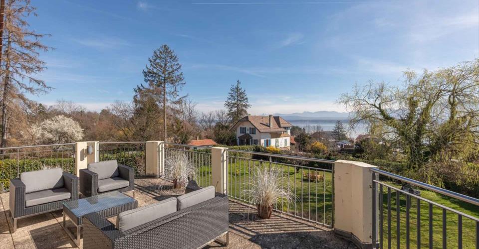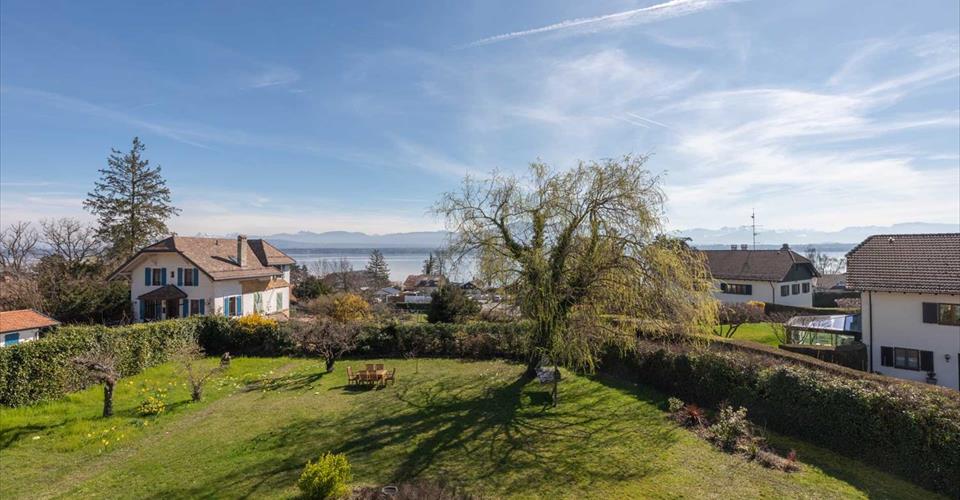 À Mies, cette villa exceptionnelle, offerte à 4’900’000.-, profite d’une implantation rêvée à quelques pas du lac Léman. Érigée sur une parcelle de 1’674 m², elle s’étale sur 375 m² habitables répartis sur trois étages. Avec ses 9,5 pièces, dont 5 chambres et 5 salles de bains, la maison se prête parfaitement à la vie familiale ou à l’accueil de nombreux invités. Cette villa se distingue par sa composition en deux parties distinctes : un bâtiment historique empreint de charme et d’authenticité, et une extension moderne qui s’intègre de manière fluide et réfléchie à l’ensemble. Cette fusion entre l’ancien et le nouveau permet non seulement de préserver l’âme et l’esthétique de la propriété originelle mais aussi d’incorporer les avantages et le confort du design contemporain. La propriété tire pleinement parti de son emplacement privilégié, offrant des terrasses qui invitent à la contemplation des paysages lacustres et montagneux, complétées par un jardin paysagé conçu pour enrichir l’expérience extérieure. L’acquisition de ce bien est une occasion rare de jouir simultanément d’un vaste espace intérieur, d’une parcelle d’angle généreuse et d’une vue époustouflante sur le lac Léman. Pour davantage de détails, nous vous invitons à visiter le site de la vente à l’adresse suivante : https://terrasses-de-mies.ch