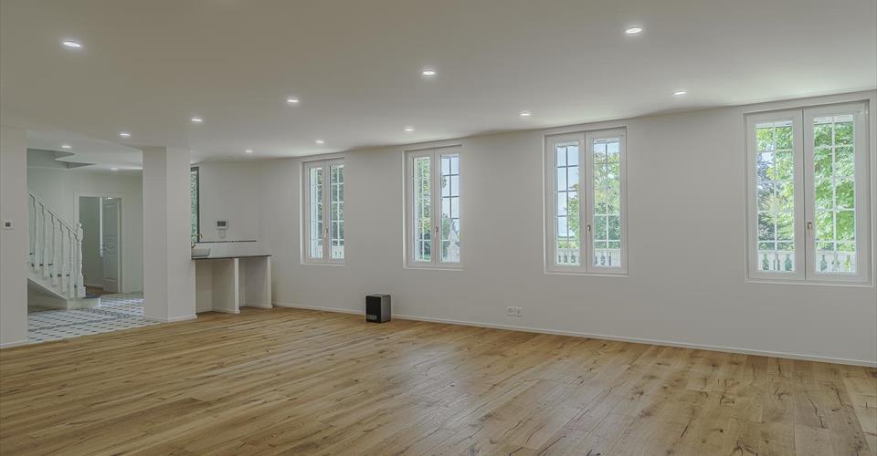 Spacieuse propriété rénovée maRcus a le plaisir de vous présenter cette vaste propriété de 13 000 m² sise à Echichens (région Morges), qui offre un cadre de vie paisible avec une vue sur le lac Léman et les Alpes. La maison principale, construite en 1960 et entièrement rénovée en 2019, se distingue par ses volumes généreux et ses finitions soignées. Le rez-de-chaussée est organisé autour d’espaces de vie ouverts, comprenant un salon avec cheminée, une salle à manger avec foyer, et une cuisine moderne avec un grand îlot central. Cet étage abrite également une suite avec dressing et salle de bain, ainsi qu’une deuxième chambre. L’étage supérieur offre un grand espace bureau (ou chambre) ainsi que deux chambres supplémentaires. La propriété est dotée d’une domotique complète et d’une infrastructure moderne, avec un portail automatique pour l’accès. Le vaste jardin, avec sa piscine de 15 mètres sur 6, est l’endroit idéal pour se relaxer. En plus de la maison principale, une dépendance propose un appartement de 2,5 pièces rénové et parfaitement autonome pour accueillir des invités ou du personnel. Un garage et des espaces de rangement sont également disponibles. La production pour le chauffage est assurée par une pompe à chaleur. Spacious renovated property maRcus is pleased to present this vast 13,000 m² property in Echichens (Morges region), offering a peaceful living environment with views of Lake Geneva and the Alps. The main house, built in 1960 and fully renovated in 2019, boasts generous volumes and meticulous finishes. The ground floor is organised around open-plan living areas, including a lounge with fireplace, a dining room with fireplace, and a modern kitchen with a large central island. This floor also houses a suite with dressing room and bathroom, as well as a second bedroom. The upper floor offers a large office space (or bedroom) and two further bedrooms. The property is equipped with full home automation and modern infrastructure, including an automatic gate for access. The large garden, with its 15 x 6 metre swimming pool, is the perfect place to relax. In addition to the main house, an outbuilding offers a renovated 2.5-room flat that is perfectly self-contained for guests or staff. A garage and storage space are also available. Heating is provided by a heat pump.