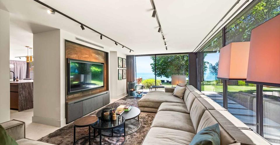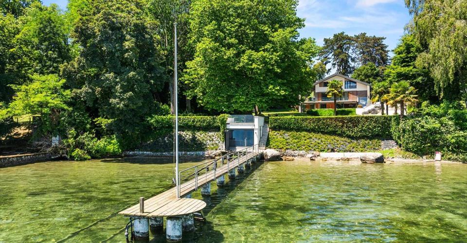 Élégance, confort et panorama à couper le souffle. Située dans un cadre idyllique en bordure du lac Léman, cette somptueuse propriété d’exception s’impose comme une véritable œuvre architecturale. Offrant plus de 350 m² de surface habitable, elle séduit par son élégance intemporelle et sa vue panoramique à couper le souffle. Dès l’entrée, le ton est donné : matériaux nobles, finitions haut de gamme, volumes généreux et luminosité omniprésente grâce aux vastes baies vitrées ouvrant sur le lac. L’alliance harmonieuse de la pierre naturelle et des bois précieux crée une atmosphère à la fois chaleureuse et sophistiquée. Répartie sur quatre niveaux, la villa propose une organisation intérieure pensée dans les moindres détails. Chaque espace a été conçu pour offrir confort, fonctionnalité et raffinement. Le rez-de-chaussée s’ouvre sur de magnifiques terrasses dominant le lac, parfaites pour recevoir ou simplement profiter du paysage en toute quiétude. La cuisine, entièrement équipée avec des matériaux de très haute qualité, ravira les amateurs de gastronomie. Elle allie esthétique contemporaine et convivialité, dans un espace où chaque détail a été soigneusement pensé. La villa dispose de quatre chambres, toutes véritables cocons de sérénité. La suite parentale, avec sa salle de bains attenante et son dressing sur mesure habillé de cuir, bénéficie d’une vue imprenable sur les eaux du Léman. Le sous-sol est dédié au bien-être et aux loisirs : un espace spa avec hammam et sauna invite à la détente absolue, complété par des aménagements de qualité. À l’extérieur, un jardin paysager magnifiquement entretenu encadre une superbe piscine, tandis qu’une vaste terrasse surplombe majestueusement le lac. Un ponton privé, un garage à bateau et un accès direct à l’eau offrent un cadre de vie exclusif aux amateurs d’activités nautiques. Idéalement située dans un quartier résidentiel prisé de St-Prex, la propriété allie calme absolu et proximité des commodités. Genève est accessible en 35 minutes, l’Institut Le Rosey en 16 minutes, et La Côte International School en seulement 10 minutes. Enfin, un système de sécurité 24h/24 et un garage pour deux voitures et motos complètent les prestations de ce bien unique.