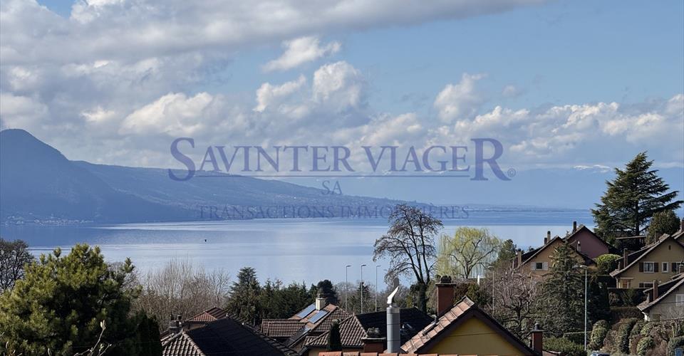 La propriété concernée est à vendre en VIAGER occupé – les vendeurs restent occupant des lieux jusqu’à la fin de leurs vies. Le Viager est un investissement immobilier: optimisation fiscale, plus-value, retour sur l’investissement, héritage… Située dans un bel environnement et avec vue sur le lac, cette maison offre beaucoup d’atouts. Elle se compose de 2 appartements. Le 1er appartement de plein pied de 4,5 pièces d’environ 94 m2 – Hall d’entrée – Cuisine équipée – Salon – salle à manger – 2 chambres – 1 bureau – 1 salle de bain – WC – Terrasse – Jardin Le 2ème appartement sur 2 niveaux d’environ 118 m2 – Hall d’entrée – Cuisine équipée – Salon – Salle à manger – 3 chambres – 2 Salles de bain – Balcon – Jardin Terrain de 1135 m2 – 3 garages – 61 m2 – places de parking Vente en viager occupé : F. 81 ans, F. 75 ans Valeur vénale : CHF 1’910’000 Bouquet (paiement unique) : CHF 1’091’000 Pas de rente