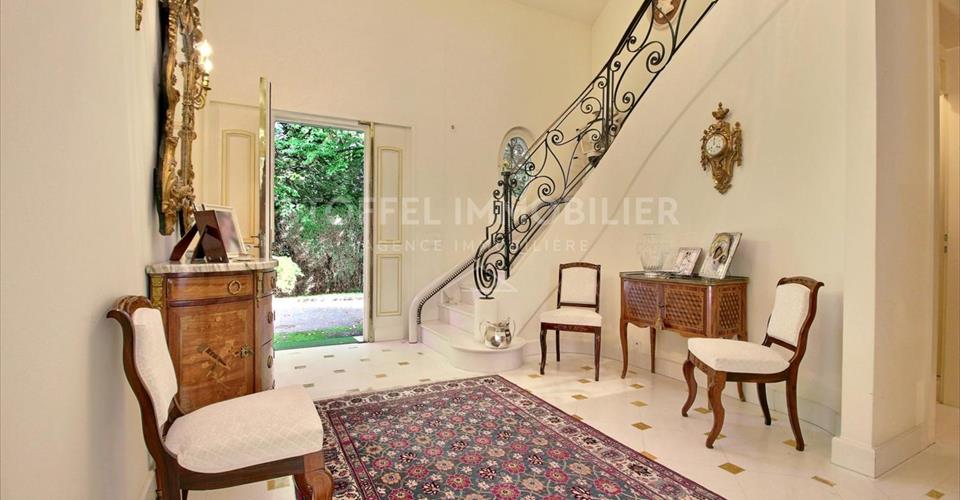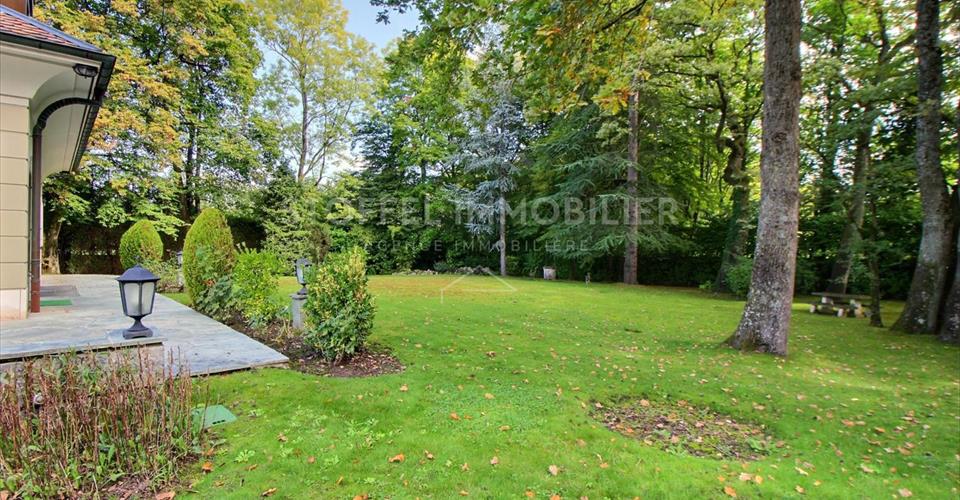 Située à Conches, dans la commune prisée de Chêne-Bougeries, cette élégante villa bénéficie d’un environnement calme et verdoyant, au bout d’un chemin sans issue. Proche des commerces de Florissant, des écoles (dont l’École Internationale), des transports publics et à seulement dix minutes du centre-ville, elle profite d’un emplacement idéal. D’architecture classique et parfaitement entretenue, cette demeure d’environ 330 m² habitables (515 m² utiles) offre de superbes espaces de réception : vaste salon, salon avec cheminée, salle à manger, cuisine équipée et bureau. L’étage dispose de quatre chambres à coucher et de trois salles de bains. Le sous-sol aménagé comprend un grand salon-salle de jeux, une chambre supplémentaire, un sauna avec douche et des locaux usuels. Une cour d’entrée, un garage et des places de parking extérieures complètent l’ensemble. Vente en nom Disponibilité à convenir