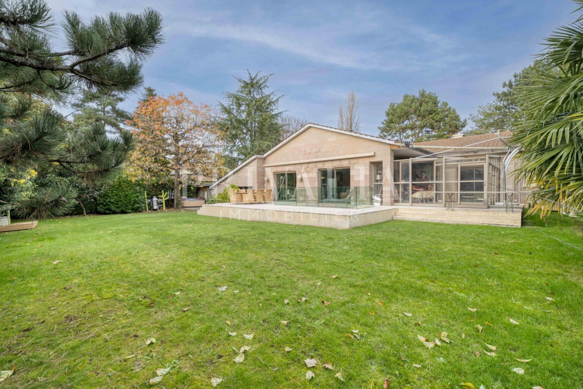 Située au cœur de la Gradelle, sur la commune de Cologny, cette belle villa individuelle de 440 m², entièrement rénovée en 2015 avec des matériaux haut de gamme, offre un cadre de vie prestigieux alliant confort, élégance et sérénité. Elle se niche au fond d’un chemin privé, garantissant une intimité absolue et un environnement paisible.