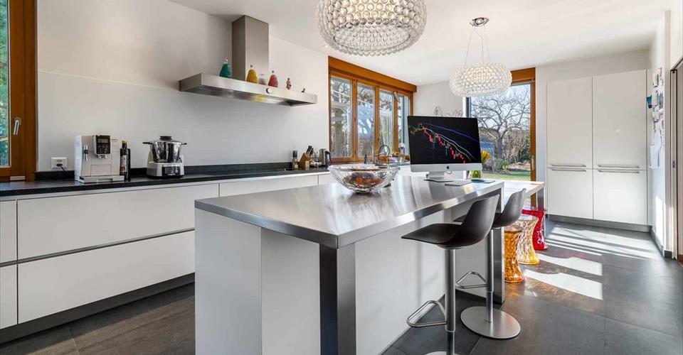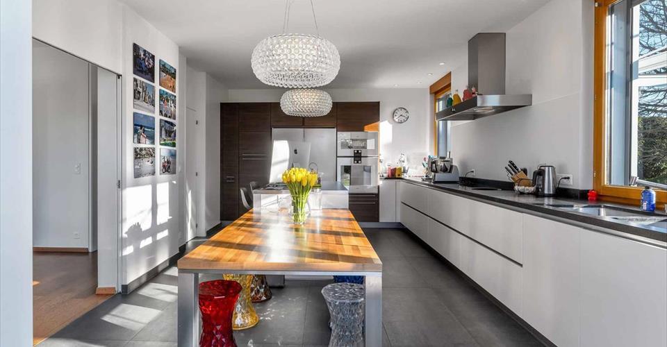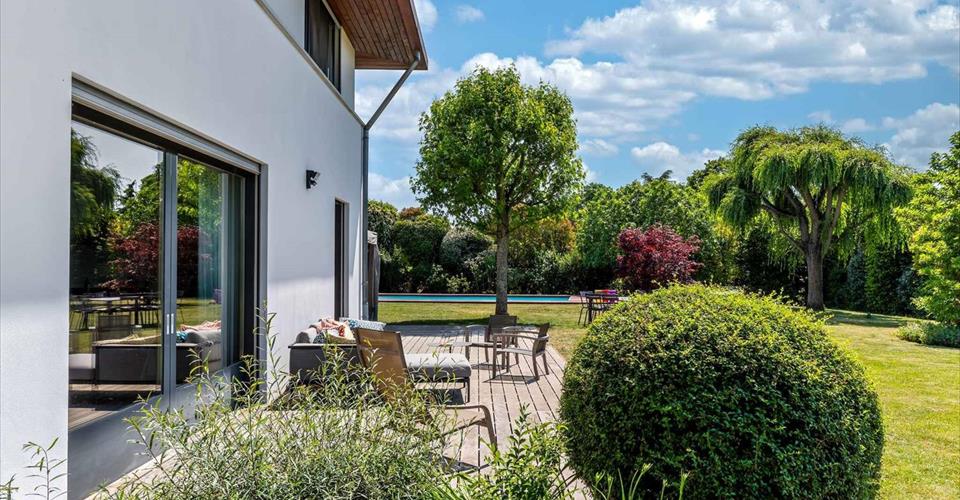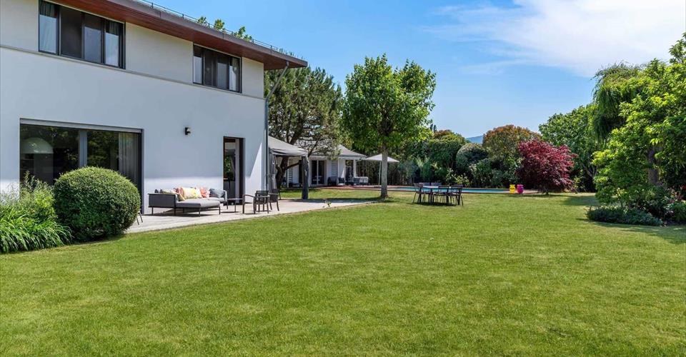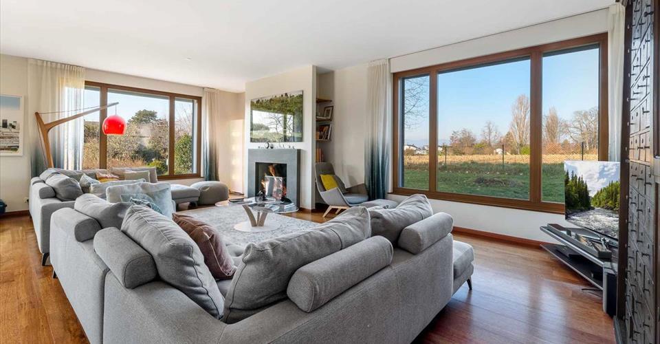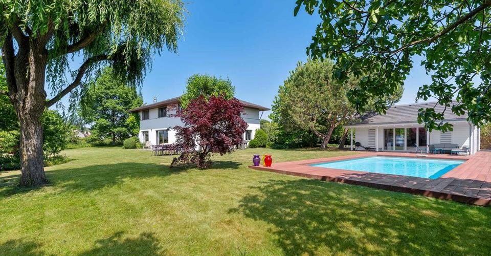Située sur la commune de Corsier, cette superbe villa familiale construite en 2001 bénéficie d’un emplacement prisé, au cœur d’un quartier résidentiel paisible. À proximité immédiate des écoles, du lac et à quelques pas seulement d’un arrêt de bus, elle offre un cadre de vie idéal pour une famille. Édifiée sur une belle parcelle sans vis-à-vis, la propriété dispose d’un grand jardin agrémenté d’une piscine et d’un pool house. La villa se développe sur trois niveaux hors sol, complétés par un sous-sol. Au rez-de-chaussée, les pièces de vie très lumineuses s’ouvrent sur le jardin et les terrasses. Le premier étage accueille cinq chambres à coucher, dont une belle suite parentale avec salle de douche attenante. Les combles ont été aménagées en une grande salle polyvalente, parfaite comme salle de jeux, bureau ou espace de loisirs.