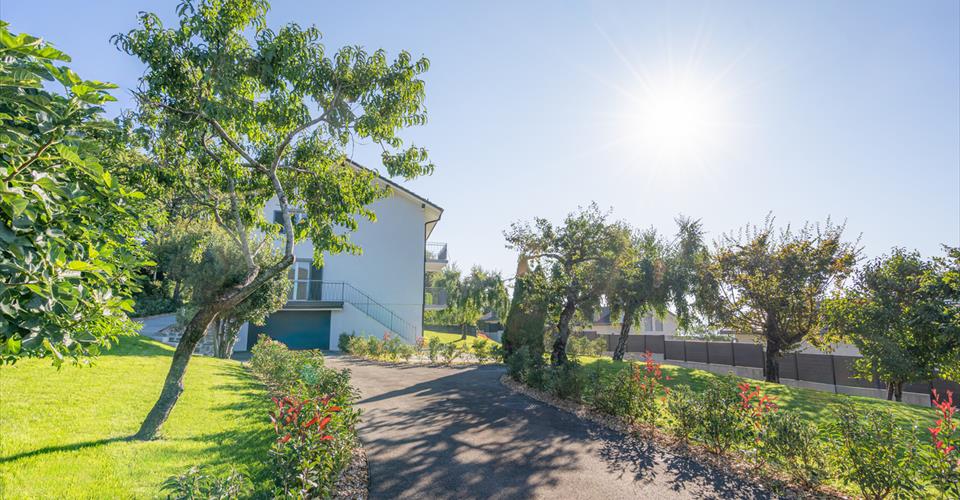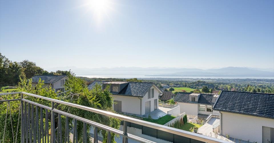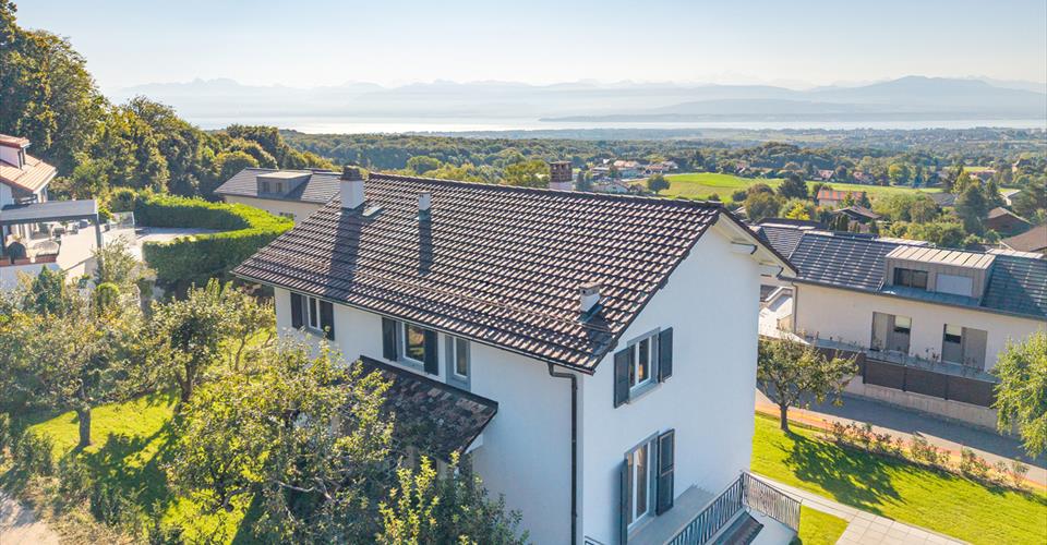 Située dans les hauteurs prisées de la commune de Genolier, cette magnifique villa individuelle rénovée en 2025 séduit par son cadre exceptionnel, son confort et sa vue spectaculaire sur le lac Léman et la chaîne des Alpes. Grâce à sa position dominante, la propriété bénéficie d’un panorama dégagé depuis tous les niveaux de la maison. Édifiée sur une parcelle de 1’171 m², cette villa offre une surface utile d’environ 300 m², dont une surface habitable d’environ 200 m² pour la partie principale. Un appartement indépendant de 2 pièces (environ 35m²) complète de façon attractive l’ensemble. Situé au rez-de-chaussée, il est idéal pour un espace professionnel, des invités ou une location. Le jardin propose de généreux espaces extérieurs ainsi qu’un environnement verdoyant et paisible. Plusieurs places de stationnement, un grand garage, un vaste galetas et un sous-sol entièrement excavé viennent agrémenter ce bien rare. Une piscine et une pergola bénéficient déjà d’une autorisation de construire (non réalisées aujourd’hui). Cette villa combine confort de vie, espace et vues à couper le souffle dans un environnement résidentiel privilégié. Les points forts : Vue imprenable sur le lac et les Alpes 6 chambres et 4 salles d’eau Spectaculaire suite parentale, avec grand dressing et vaste salle de douche Surface utile d’environ 300 m² Grand garage, places de parc et sous-sol excavé Rénovation complète terminée en 2025 À découvrir sans tarder – Un bien rare sur le marché !