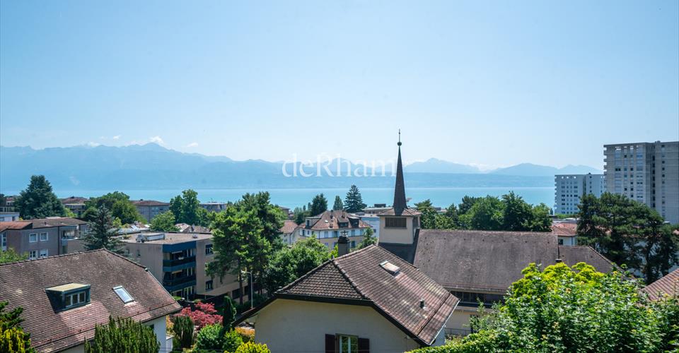 Offrant une vue sur le lac, cette villa individuelle est idéalement située dans la commune de Lausanne, au cœur d’un quartier résidentiel calme, à seulement dix minutes du centre-ville et du lac. Elle dispose d’une surface utile de 330 m² sur un terrain de 860 m². Les espaces intérieurs comprennent un grand séjour avec cheminée, six chambres, deux bureaux, un dressing ainsi que des combles aménageables avec une belle hauteur sous plafond permettant ainsi d’y créer un espace supplémentaire selon vos envies. Un jardin d’environ 700 m² complète la propriété et offre un cadre agréable pour profiter de l’extérieur. Quelques travaux de rénovation permettront de mettre la maison au goût du jour et de valoriser pleinement tout son potentiel.