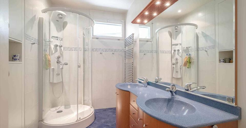 Erigée en 2005 sur une belle parcelle arborée et piscinable de plus de 1’000 m², orientée Sud-Ouest et clôturée par un portail , cette villa individuelle offre un cadre de vie intimiste et se distingue par une architecture aux lignes contemporaines, qui lui confère une très belle luminosité. La villa présente une surface habitable d’environ 220 m² et une surface utile d’environ 300 m². Le rez-de-chaussée accueille un hall d’entrée avec penderie, un salon avec cheminée, une salle à manger et une cuisine ouverte sur le séjour. Une chambre parentale avec armoires encastrées et salle de bains attenante, accès à l’extérieur, une seconde chambre avec armoires, salle de bains attenante et accès extérieur ainsi qu’une pièce servant d’office / walk-in closet complètent ce niveau. L’étage offre une chambre avec armoires encastrées et salle de bains attenante, un bureau éventuellement transformable en salle de bains, une chambre / bibliothèque, et un bel espace sur la mezzanine pouvant faire office de bureau ou coin TV. Au sous-sol se trouvent une grande cave à vins, une buanderie, le local chauffage (gaz), un grand espace de rangements et une pièce polyvalente disponible pouvant faire office de salle de jeux, de bureau ou de home-cinema. Un chalet de jardin peut être également utilisé comme espace de rangements. Un couvert pour 2 véhicules ainsi que 3 places de parc extérieures viennent parfaire cette belle villa familiale.