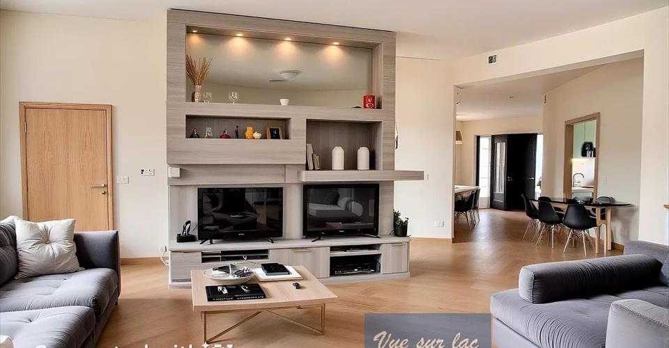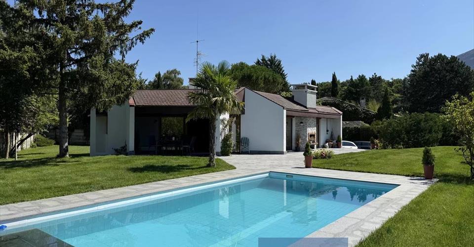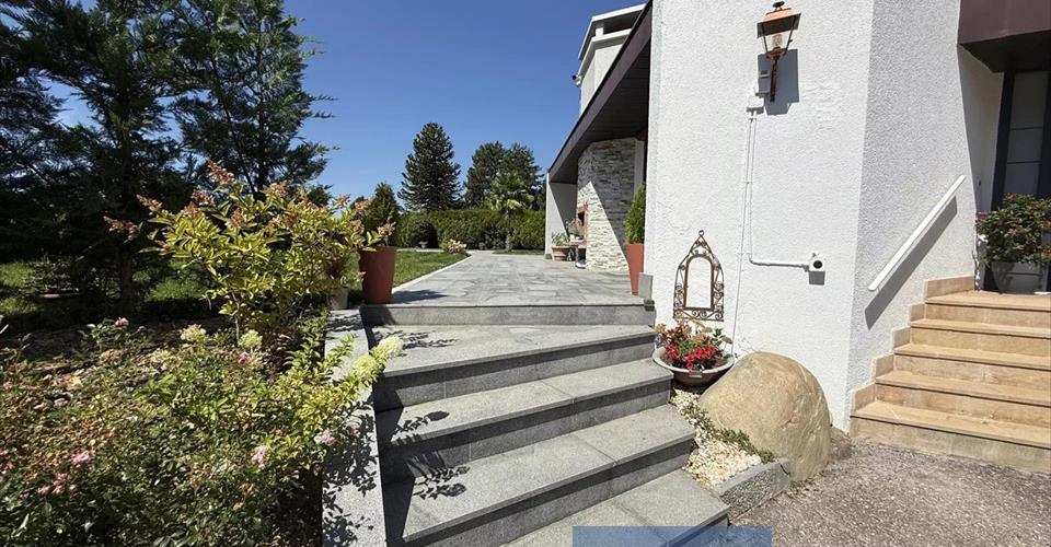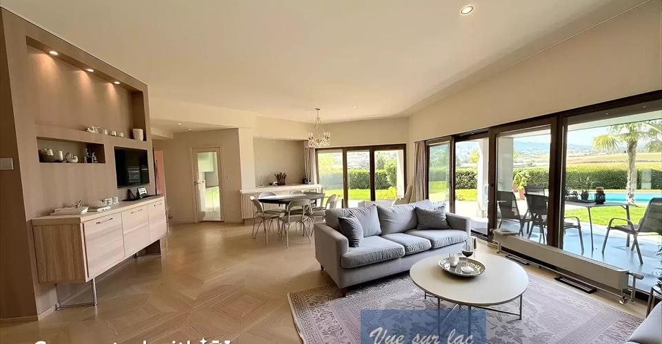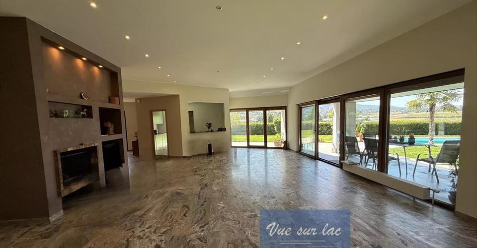 Découvrez cette villa située à Vessy, offrant une vue imprenable sur la campagne et le Salève, procurant une ambiance de quiétude tout en bénéficiant de la proximité du centre de Genève. Construite sur 2 étages, elle propose une surface habitable de 192 m² par étage avec 9 pièces spacieuses, idéales pour les familles nombreuses appréciant les grands espaces. Rez-de-jardin : Actuellement, elle propose 2 chambres à coucher, une grande salle de bain avec douche et sauna, ainsi que la possibilité d’ajouter un hammam. Une vaste pièce lumineuse d’environ 60 m² peut être utilisée comme atelier, home cinéma, salle de fitness, salle de musique, bureau, espace de vie supplémentaire, etc. Doté d’un accès indépendant, cet espace peut également être employé comme cabinet ou bureau pour recevoir des patients ou des clients. Une cave à vin, un abri anti-atomique, et un espace de rangement complètent cet étage. Le spacieux séjour, agrémenté d’une cheminée et de grandes baies vitrées coulissantes donnant sur la terrasse et le jardin, est idéal pour organiser des réceptions et de grandes tablées dans une ambiance chaleureuse. La villa a été récemment rénovée et équipée de fenêtres à triple vitrage avec volets électriques dans le séjour. À l’extérieur, le jardin clos avec sa piscine, parfaitement conçu pour éviter tout vis-à-vis, ajoute une touche de verdure à votre quotidien. Le coefficient existant permet d’agrandir la maison. Que ce soit pour organiser des rencontres familiales ou entre amis, ou pour apprécier un moment de tranquillité, cette propriété offre un cadre de vie exceptionnel pour ceux qui recherchent confort et sérénité.