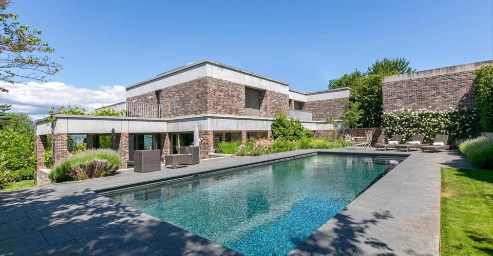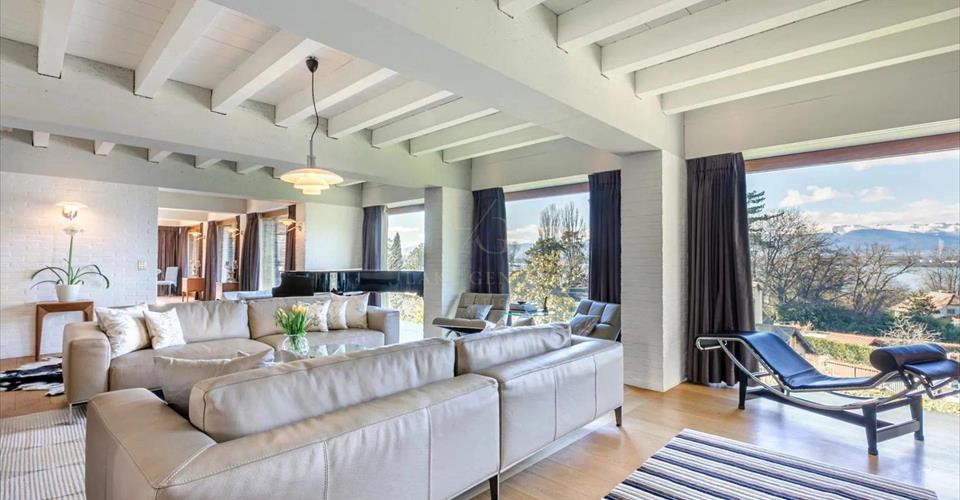 Magnifique villa individuelle conçue par l’architecte Charles Pictet et construite en 2012. Elle se situe sur un terrain en pente d’environ 1’800 m2 dans la prestigieuse commune d’Anières, à proximité du lac Léman, à 2 minutes à pied du centre du village et à 15 minutes du centre-ville de Genève. Cette luxueuse villa offre environ 580 m2 utiles répartis sur 3 niveaux et un toit-terrasse. Ses nombreux espaces de vie suivent un plan classique. La réception et les espaces de vie sont organisés au niveau de l’entrée et un studio complète ce niveau. Un escalier en spirale relie les quatre chambres avec leur salle de bains ensuite à l’étage. Un second escalier mène de la suite parentale aux espaces de vie au rez-de-chaussée et aux pièces du sous-sol. Il crée également une connexion entre la salle à manger, la cave à vin et le toit-terrasse. Elle dispose également de finitions prestigieuses en chêne massif et granit, ainsi que d’une sécurité et de prestations haut de gamme grâce au système domotique desservant toute l’habitation. Son extérieur saura vous séduire par ses petits jardins sur plusieurs niveaux comprenant un large éventail d’alignements géographiques orné de : pelouses ; cerisier permanent ; noyer ; pommier ; vastes parterres de roses et pergola couverte de vigne. La maison offre une belle vue sur le lac Léman vers le nord-ouest et des vues extraordinaires à 360 degrés, dans toutes les directions sur le lac, le Jura, les Alpes, les champs et les Voirons depuis la terrasse sur le toit. Une piscine de 12m x 4,4m entièrement chauffée par des énergies renouvelables ; un pool house et un garage pour deux grandes voitures parachèvent cette superbe propriété.