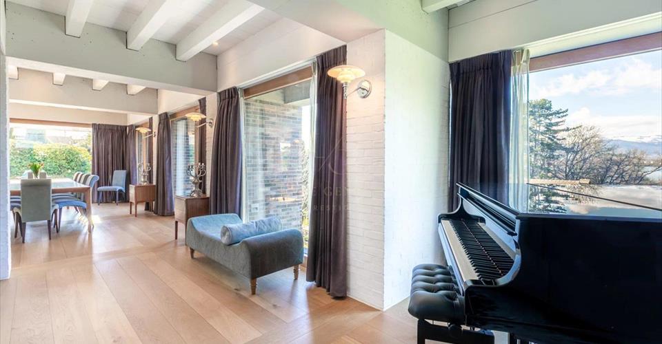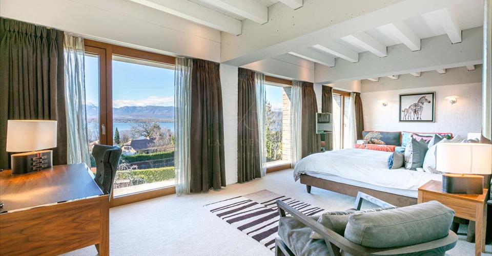 Magnifique villa individuelle conçue par l’architecte Charles Pictet et construite en 2012. Elle se situe sur un terrain en pente d’environ 1’800 m2 dans la prestigieuse commune d’Anières, à proximité du lac Léman, à 2 minutes à pied du centre du village et à 15 minutes du centre-ville de Genève. Cette luxueuse villa offre environ 580 m2 utiles répartis sur 3 niveaux et un toit-terrasse. Ses nombreux espaces de vie suivent un plan classique. La réception et les espaces de vie sont organisés au niveau de l’entrée et un studio complète ce niveau. Un escalier en spirale relie les quatre chambres avec leur salle de bains ensuite à l’étage. Un second escalier mène de la suite parentale aux espaces de vie au rez-de-chaussée et aux pièces du sous-sol. Il crée également une connexion entre la salle à manger, la cave à vin et le toit-terrasse. Elle dispose également de finitions prestigieuses en chêne massif et granit, ainsi que d’une sécurité et de prestations haut de gamme grâce au système domotique desservant toute l’habitation. Son extérieur saura vous séduire par ses petits jardins sur plusieurs niveaux comprenant un large éventail d’alignements géographiques orné de : pelouses ; cerisier permanent ; noyer ; pommier ; vastes parterres de roses et pergola couverte de vigne. La maison offre une belle vue sur le lac Léman vers le nord-ouest et des vues extraordinaires à 360 degrés, dans toutes les directions sur le lac, le Jura, les Alpes, les champs et les Voirons depuis la terrasse sur le toit. Une piscine de 12m x 4,4m entièrement chauffée par des énergies renouvelables ; un pool house et un garage pour deux grandes voitures parachèvent cette superbe propriété.
