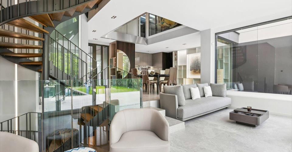 Cette villa contemporaine aux luxueuses finitions s’étend sur quatre niveaux, agrémentés d’un ascenseur privatif et offre une surface utile de 327 m2. Elle jouit d’un splendide jardin plat richement arboré, de vastes terrasses et d’une piscine privative à débordement, offrant une expérience immersive dans la nature. Veuillez nous contacter pour plus d’informations!