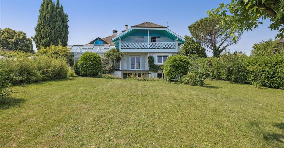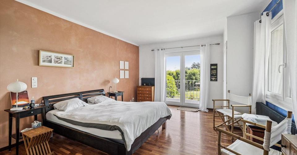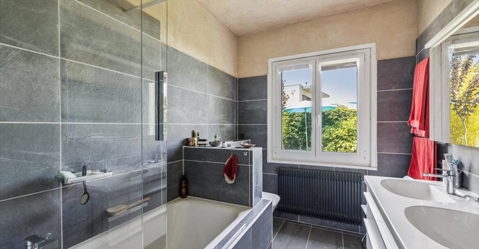 Située sur les hauteurs paisibles de Confignon, à proximité immédiate de Bernex et à seulement quelques minutes du centre-ville de Genève, cette villa individuelle offre un cadre de vie rare : un environnement calme, un dégagement exceptionnel sur la campagne environnante et une vue panoramique sur tout Genève, y compris le Jet d’eau. Le quartier bénéficie d’une excellente qualité de vie, avec crèches, écoles primaires et cycle d’orientation accessibles à pied en moins de dix minutes. Le Signal de Bernex, point culminant du canton, ainsi que de nombreux équipements sportifs tels que terrains de football, courts de tennis et pistes de course, se trouvent également à proximité immédiate. La maison est érigée sur une généreuse parcelle de 1’563 m², entièrement en zone 5 constructible. Grâce à cette situation dominante, elle bénéficie d’une intimité totale et d’un ensoleillement optimal. Agrandie et rénovée dans les années 1990, elle a été entretenue avec soin au fil du temps. Elle se présente en bon état général, avec du double vitrage, une bonne isolation, un système de chauffage au mazout récent et des espaces généreux. La surface habitable est d’environ 380 m², pour une surface utile de 555 m². Au rez-de-chaussée, l’entrée principale s’ouvre sur un vestiaire. La cuisine avec bar est ouverte sur un vaste séjour et une salle à manger, avec un salon chaleureux doté d’une cheminée à bois. Ce niveau comprend trois chambres, dont deux avec accès balcon, ainsi qu’une salle de bain avec WC et une salle de douche avec WC. Un accès direct depuis le salon mène à une belle serre vitrée, véritable espace de détente utilisable été comme hiver, avec ses plantes et son atmosphère lumineuse. L’étage supérieur, actuellement organisé en appartement indépendant, peut facilement être réintégré à l’habitation principale par la création d’une cage d’escalier intérieure. Il comprend une grande cuisine avec coin repas (installée en 2016), un salon avec poêle à bois, de nombreux rangements, un dressing, ainsi qu’une salle de bain avec WC et buanderie. Ce niveau propose également trois belles chambres, toutes avec mezzanine et balcon, dont deux offrent une vue imprenable sur Genève et le Jet d’eau. Une seconde salle de bain avec WC et douche complète l’étage. Le sous-sol constitue un atout supplémentaire de cette maison. Il accueille un studio indépendant complet, avec accès de plain-pied, comprenant une cuisine/chambre et une salle de douche avec WC. Ce niveau dispose également d’une chambre supplémentaire avec fenêtres, d’une salle de bain séparée, d’une buanderie, d’un local technique et d’une cave. À l’extérieur, la villa bénéficie d’une superbe piscine, régulièrement entretenue. Une cour permet de stationner plusieurs véhicules, et un couvert abrite deux voitures ainsi qu’un espace pour les vélos. Le jardin, arboré et bien entretenu, offre différents espaces, dont un potager et un deuxième accès voiture, le tout dans un cadre calme et sans vis-à-vis. Cette propriété est particulièrement rare sur le marché genevois. Elle séduira une famille recherchant une grande maison avec potentiel, plusieurs générations souhaitant vivre ensemble, ou un acquéreur à la recherche d’un bien offrant une configuration modulable et une vue exceptionnelle. Son volume habitable, son grand terrain, sa situation dominante et sa tranquillité en font un bien unique.