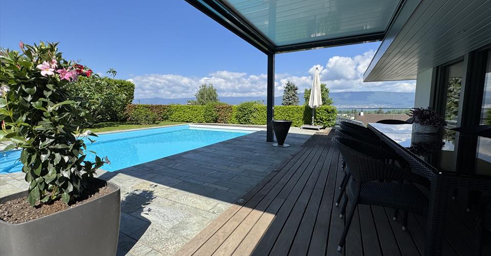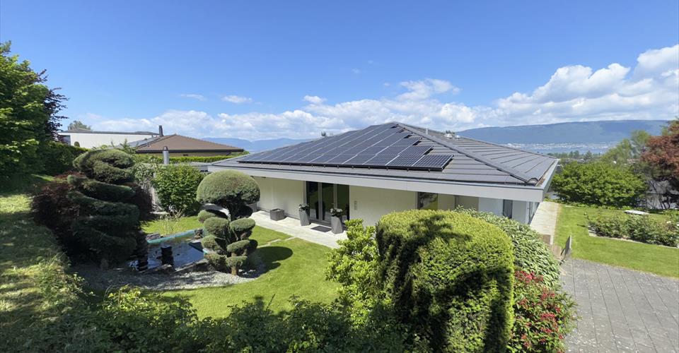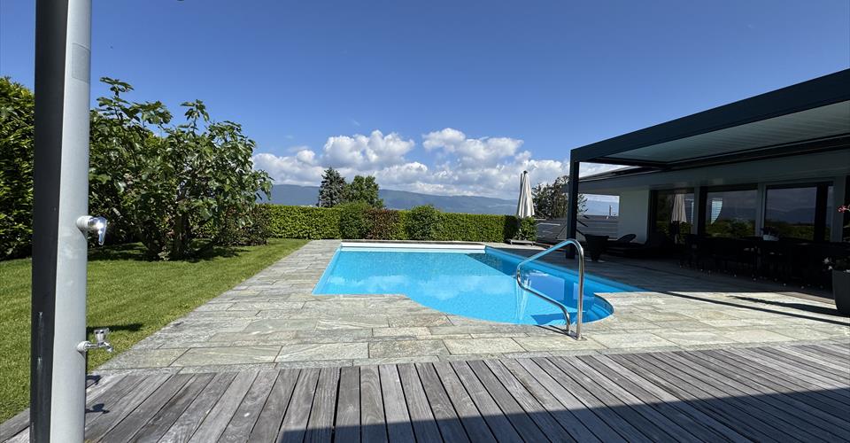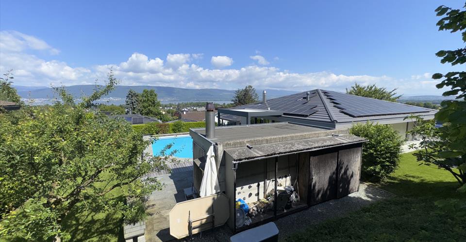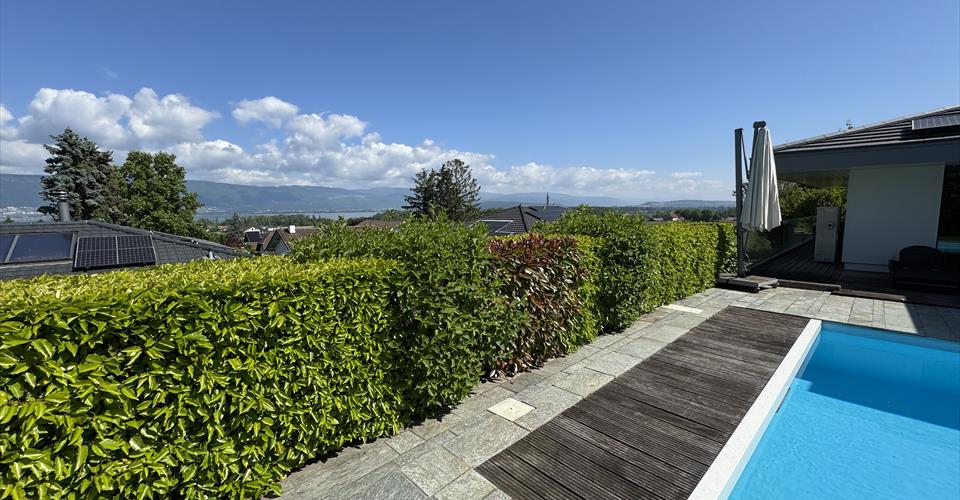 Nichée sur les hauteurs de Cudrefin, dans un cadre résidentiel paisible et verdoyant, cette villa d’exception allie élégance, confort moderne et panorama à couper le souffle. D’une surface habitable d’environ 250 m², elle séduit par son atmosphère méditerranéenne, sa luminosité et ses finitions haut de gamme. Elle dispose d’une superbe suite parentale avec salle de bain et dressing, d’un vaste espace de vie avec cheminée suspendue, d’une cuisine ouverte idéale pour les épicuriens, et d’un accès direct à une terrasse ensoleillée avec pergola et piscine. Le niveau inférieur comprend deux chambres avec terrasses privatives, une grande salle de bain, une buanderie et un accès au garage intérieur. Atout rare : un carnotzet authentique avec cave à vin, parfait pour des moments conviviaux. Technologies modernes (panneaux solaires, pompe à chaleur géothermique, domotique) et cadre naturel exceptionnel complètent ce bien unique. Proche du lac, de la Grande Cariçaie et des commodités, cette villa est idéale comme résidence principale ou maison de vacances. Une opportunité rare à découvrir sans tarder.