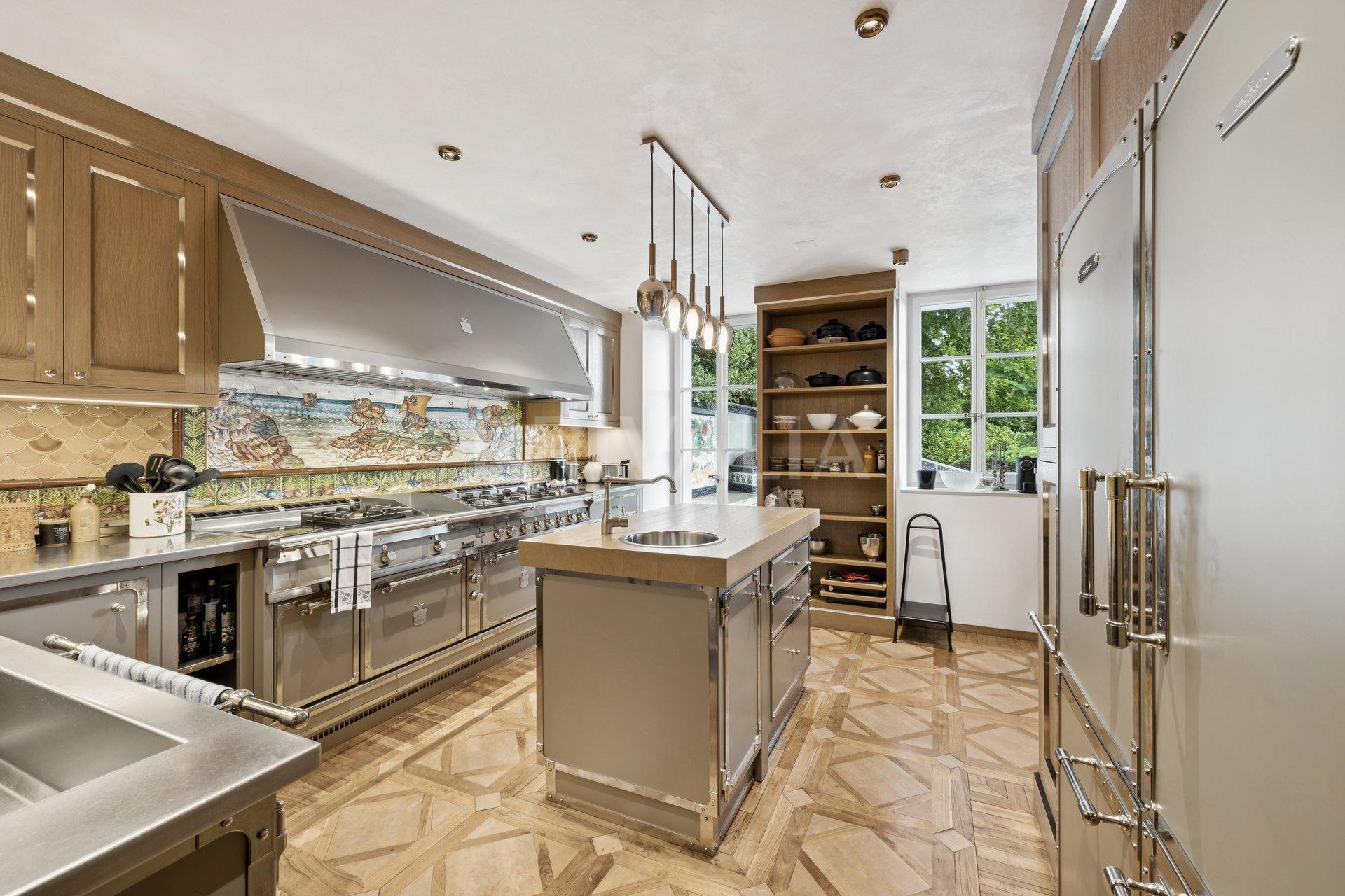 La propriété dispose aussi d’un pavillon bien-être avec piscine intérieure de 18 x 8 m, baies vitrées et espace spa. Domotique avancée, sécurité optimale, garage pour 4 véhicules et stationnements extérieurs complètent l’ensemble.
