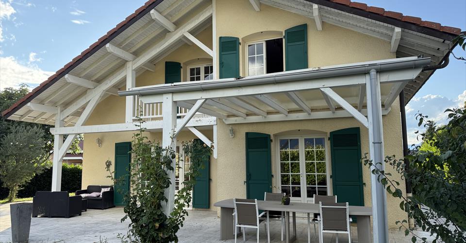 VILLA INDIVIDUELLE DE STANDING Magnifique propriété haut de gamme dans un quartier résidentiel et calme à 2 pas de la frontière Suisse. Sise sur une belle parcelle de 1000 m2 bien arborée dans le beau village de Veigy bénéficiant de toutes les commodités, commerces, école etc. L’habitation de 350 m2 au total offre un beau volume idéal pour une grande famille. Hall d’entrée dégagé qui dessert un WC visiteur, cuisine séparée toute équipée, salle à manger salon avec cheminée, le tout prolongé par de belles terrasses de près de 100 m2. La partie nuit est composée d’une suite parentale comprenant 2 dressings et une grande salle de bain. 3 chambres avec vue sur les montagnes avec 3 salles de bains attenantes, une buanderie et un grenier sont situés à l’étage. Le sous-sol offre, une grande salle de jeux, un atelier, une cave à vin, un carnotzet et un garage pour 2 voitures. Disponible de suite. LUXURY DETACHED VILLA Magnificent high-end property in a quiet residential area just a stone’s throw from the Swiss border. Located on a beautiful 1,000 m² (1,070 sq ft) plot of land with trees in the beautiful village of Veigy, benefiting from all amenities, shops, schools, etc. The 350 m² (3,700 sq ft) house offers ample space, ideal for a large family. The open-plan entrance hall leads to a guest toilet, a separate fully equipped kitchen, a dining room/living room with a fireplace, all extending onto beautiful terraces of nearly 100 m² (1,180 sq ft). The sleeping area consists of a master suite with two walk-in closets and a large bathroom. Three bedrooms with mountain views and three en-suite bathrooms, a laundry room, and an attic are located upstairs. The basement offers a large games room, a workshop, a wine cellar, and a two-car garage. Available immediately.