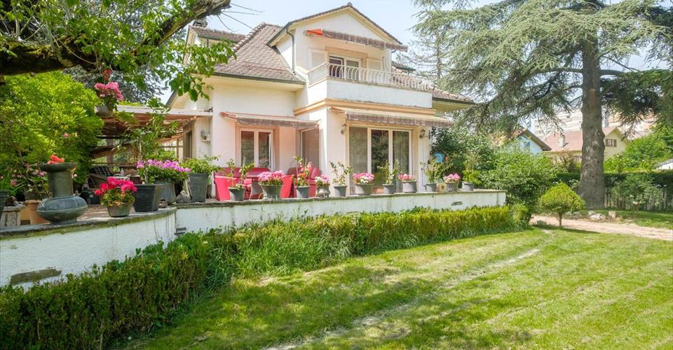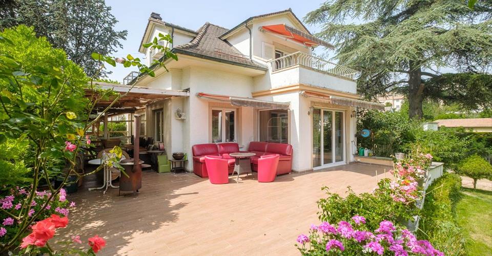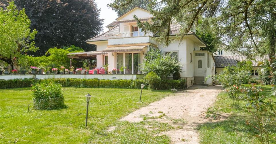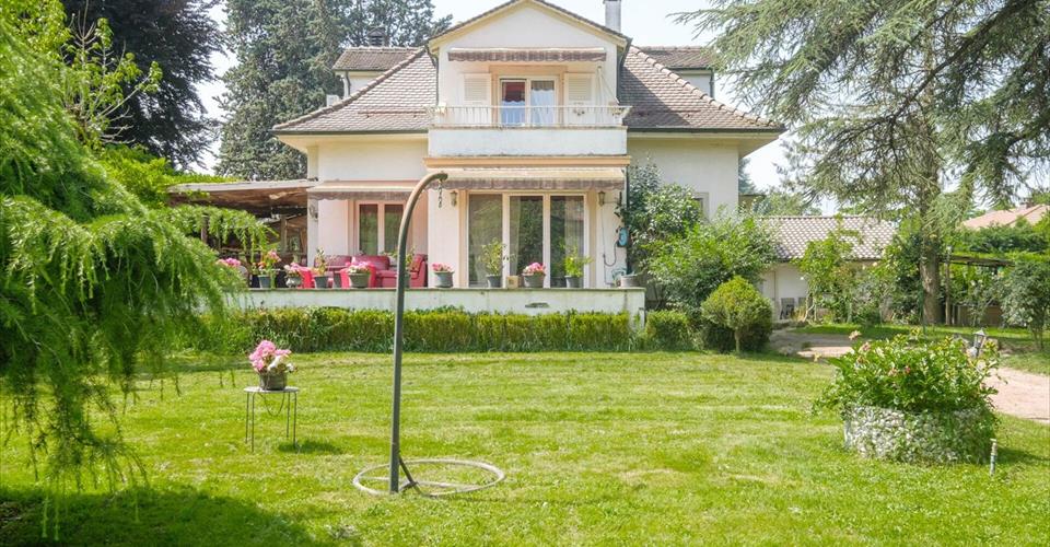 Située dans un quartier résidentiel prisé de Cointrin, cette charmante villa individuelle se déploie sur une superbe parcelle de 2’134 m², véritable écrin de verdure à quelques minutes de la ville. Offrant une surface habitable d’environ 220 m² (320 m² utiles), cette propriété conjugue le charme de l’ancien avec des aménagements modernes, le tout dans un cadre calme et intimiste. Cette propriété séduit par son calme, sa discrétion et sa proximité immédiate des écoles, transports et commerces. Un bien rare, parfait pour une famille ou pour un projet de rénovation haut de gamme. Année de construction : 1945 Surface : env. 220 m2 Surface utile : env. 320 m2 Nombre de pièces : 7 Nombre de chambres : 4 Salle d’eau : 3 Type de chauffage : Mazout Parking : Deux garage fermé et 2 places couvertes Disponibilité : A convenir Distribution intérieure Rez-de-chaussée : Spacieux séjour avec cheminée, ouvert sur une large terrasse orientée plein sud Salle à manger lumineuse Cuisine entièrement équipée, pensée pour un usage fonctionnel au quotidien Suite parentale avec salle de bains attenante et accès direct à l’extérieur Étage : Trois chambres confortables Une salle de bains Sous-sol aménagé (accès indépendant) : Une suite avec salle de douche et WC Buanderie, cave, carnotzet Extérieurs & dépendances Parc arboré parfaitement entretenu Deux garages fermés + deux places couvertes Grande terrasse idéale pour recevoir ou se détendre Pour plus d’informations et une visite, contactez 7/7 Damien Prix de vente : CHF 4’600’000.- SEGIMO GROUPE IMMOBILIER Agence immobilière Genève (siège) visitez notre site www.segimo.ch Tél