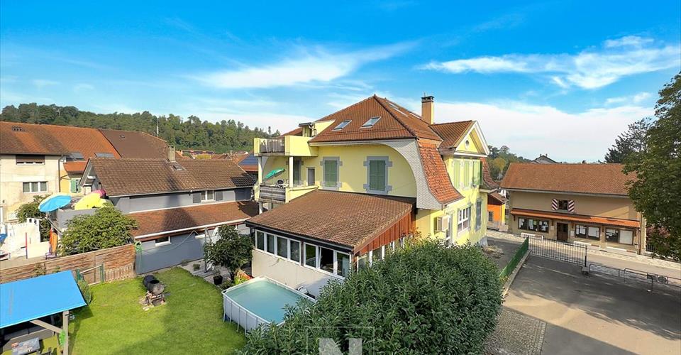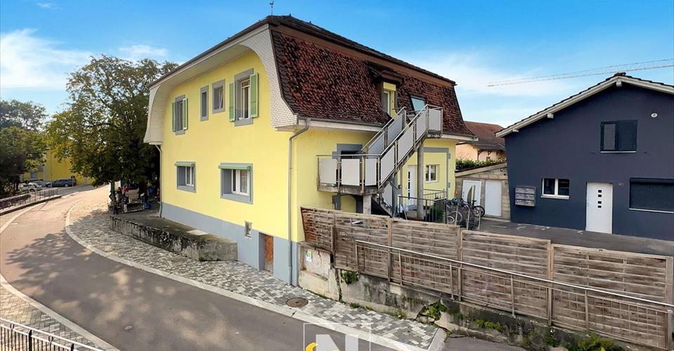 Immeuble de rendement au centre du village – Granges-près-Marnand A 10 minutes de Payerne, cette propriété est située au coeur du village de Granges-près-Marnand. Il s’agit de l’ancienne laiterie du village, entièrement refaite et rénovée avec soin en 2016 et régulièrement entretenue. La parcelle fait 641 m² et comprend un immeuble de trois appartements. Distribution des logements : Appartement du rez-de-chaussée : 4.5 pièces, environ 140 m² habitables, avec une véranda de 40 m² et un accès direct au jardin. Appartement à l’étage : 5.5 pièces, environ 140 m² habitables, avec balcon. Appartement des combles : 4.5 pièces, environ 140 m² habitables, avec mezzanine et balcon. Tous les appartements sont actuellement loués. À l’exception d’un logement, chacun est équipé d’une machine à laver ainsi que d’une cuisine bien aménagée, avec des équipements de qualité. Chaque logement possède également un canal de cheminée tubé, pouvant accueillir un poêle à bois ou à pellets. La propriété dispose d’une cour avec trois places de parking, d’un jardin, ainsi que de balcons et terrasses pour profiter de l’extérieur. En sous-sol, on trouve des caves ainsi qu’un local technique. L’immeuble est en séparatif et, concernant le chauffage, des équipements pour le gaz et le chauffage à distance sont disponibles sur la route communale. Actuellement, la propriété est chauffée par une chaudière à mazout, datant de 1999 (contrôlée, entretenue et conforme aux normes actuelles) avec un brûleur qui a été remplacé. Le système de chauffage fonctionne avec des radiateurs dans chaque appartement. Rendement locatif actuel, brut : 4,96 %. Prix : CHF 1’450’000