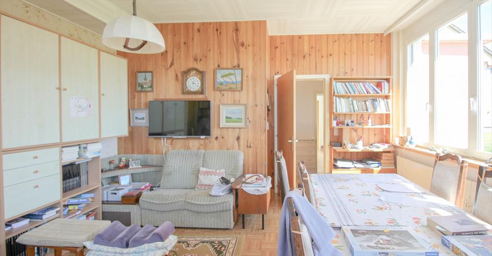 EXCLUSIVITE – VOLUMES – 2 LOGEMENTS Située dans un environnement verdoyant à L’Auberson et en retrait de la route principale, sur la commune de Ste-Croix, cette maison construite en 1870, offre un cadre paisible et un magnifique dégagement sur les champs environnants. Le village est situé à moins de 5 minutes de Ste-Croix et de ses commodités (commerces, écoles, crèches, médecins, etc.). Anciennement habilitée comme atelier, la maison bénéficie d’un volume généreux et d’une belle luminosité, notamment au rez-de-chaussée grâce à de grandes fenêtres. La propriété se compose de 2 logements indépendants : Le logement principal, au rez-de-chaussée et au 1er étage, profite d’un bel espace de vie, d’une terrasse exposée Sud et d’un garage. Il sera libre de bail en été 2026 (actuellement occupé par la propriétaire). Le second logement, situé au 1er étage, est actuellement loué et assure un revenu locatif régulier (détails du loyer sur demande). Des travaux récents ont été réalisés par la propriétaire, notamment l’installation d’une pompe à chaleur en 2021, la pose de panneaux photovoltaïques et du contrôle OIBT en 2020. La maison se distribue de la manière suivante : REZ-DE-CHAUSSEE Logement occupé par la propriétaire Garage Local technique avec espace buanderie 3 espaces de stockage/caves Réduits Chambre indépendante utilisée actuellement comme pièce à musique Accès direct à la terrasse Cuisine agencée fermée Espace salon/salle à manger lumineux Chambre no 1 au Nord Salle d’eau composée d’une baignoire et d’un lavabo WC séparé avec lavabo 1ER ETAGE Suite logement occupé par la propriétaire Espace bureau/stockage avec accès à l’étage Grand hall de distribution Chambre no 2 mansardée Grande chambre no 3 mansardée Salle d’eau avec baignoire et lavabo WC séparé Galetas Des travaux de rénovation sont à envisager au premier étage afin de moderniser les lieux et de les mettre en conformité avec les normes énergétiques actuelles. Appartement de 3 pièces loué Couloir de distribution Cuisine équipée fermée Espace salon avec accès direct à la grande terrasse 2 chambres Salle d’eau composée d’une douche, d’un WC et d’un lavabo