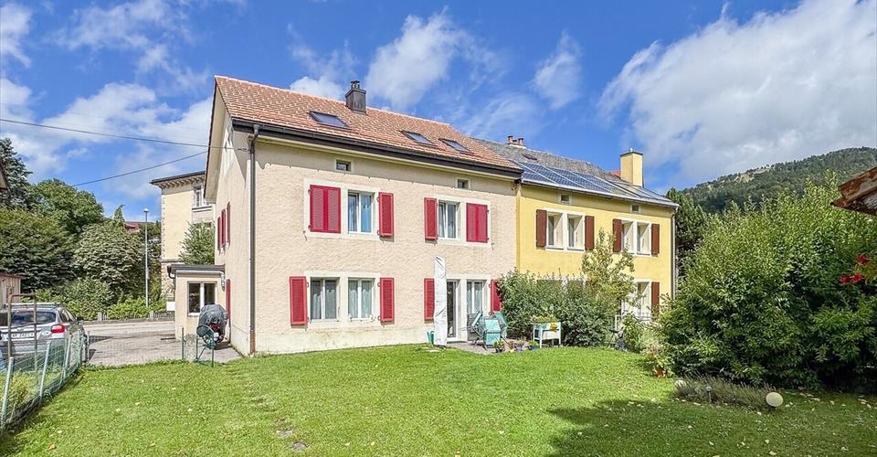 EXCLUSIVITE – OPPORTUNITE D’INVESTISSEMENT – JARDIN ET TERRASSE Située en plein centre de Ste-Croix, à quelques pas de la gare et de toutes les commodités (écoles, crèche et différents commerces), cette maison locative constitue une belle opportunité pour un investisseur à la recherche d’un bien entièrement loué et bénéficiant d’un bon entretien. Ce bien, construit vers 1900 par l’entreprise Paillard pour loger ses cadres, témoigne d’un patrimoine local riche, tout en offrant un rendement locatif intéressant. A l’étage, une grande pièce autrefois utilisée comme garderie pour les employés rappelle le passé industriel de la région. Ce caractère historique renforce la valeur patrimoniale du bien. La maison comprend 3 logements tous actuellement loués, assurant un revenu immédiat. Le jardin avec le cabanon et la terrasse dallée complète cette offre. Etat locatif annuel sans charges : CHF 37’800.00 (détails complémentaire sur demande). L’immeuble est en excellent état, avec des parties communes et des logements régulièrement soignés. Aussi, un loft a été aménagé dans les combles en 2013. D’importants investissements ont été fait dans le bâtiment, environ CHF 400’000.- depuis 2012 (détails sur demande). Elle se distribue de la manière suivant : REZ-DE-CHAUSSEE Tambour d’entrée Buanderie collective Appartement de 3 pièces loué : Hall avec réduit Cuisine agencée Séjour ouvert avec accès direct à la terrasse 2 chambres Salle d’eau équipée d’une douche, d’un lavabo et d’un WC Terrasse dallée Jardin avec cabanon 1ER ETAGE Appartement de 3 pièces loué : Hall avec armoire Cuisine agencée avec bar Séjour 2 chambres Salle d’eau équipée d’une baignoire, d’un lavabo et d’un WC 2EME ETAGE/COMBLES Loft loué : Cuisine ouverte agencée avec bar Pièce à vivre ouverte avec poutres apparentes Mezzanine Salle d’eau équipée d’une douche, d’un lavabo et d’un WC Communs : Local technique avec chaudière à gaz, galetas