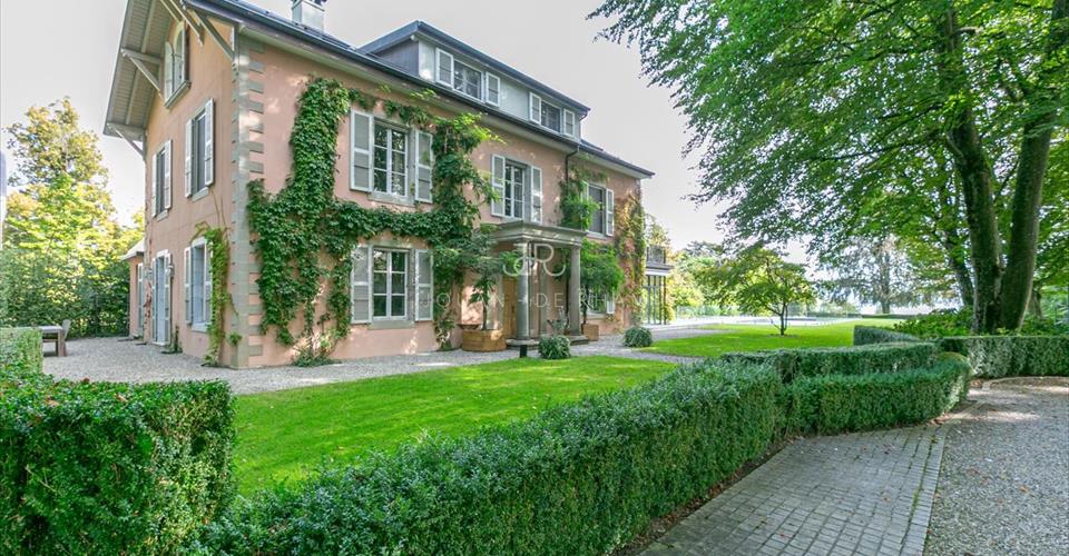 Cette sublime propriété restaurée en 2019 avec des finitions haut de gamme est située en deuxième ligne du lac sur une belle parcelle arborée d’environ 4’000 m2 . D’une superficie habitable d’environ 400 m2, elle offre au rez-de-chaussée deux salons dont un avec cheminée, une salle à manger et une cuisine haut de gamme complètement équipée avec cave à vins. Le tout est agrémenté d’une verrière offrant une magnifique luminosité. Le premier étage est composé d’une suite parentale d’une superficie de 60 m2 avec dressing et salle de bain et d’une seconde chambre avec salle de bain. Un coin salon est également à disposition. La vue sur le lac et les montagnes est époustouflante depuis cet étage. Au deuxième étage, trois grandes chambres à coucher ainsi qu’une salle de bain complètent la partie nuit. De plus, un studio indépendant situé à proximité de la maison dans le jardin, pourra ravir visiteurs ou personnel de maison.