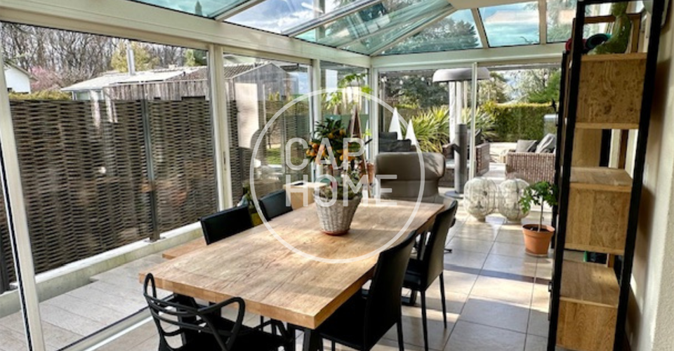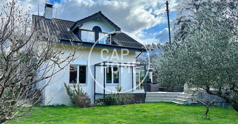 Découvrez cette charmante villa nichée au cœur d’un paisible quartier résidentiel de Vessy. Construite en 1991 et minutieusement rénovée, cette demeure offre 168 m2 de surface habitable et 262 m2 de surface utile sur une parcelle de 449 m2. Elle bénéficie d’un environnement verdoyant préservé à proximité d’une forêt, loin des nuisances. Ce cadre familial harmonieux allie tradition et modernité. Proche du village, des écoles, des commodités et des transports, il offre tranquillité et praticité. Elle se distribue comme suit: Au rez-de-chaussée: – Hall d’entrée avec vestiaire – WC visiteurs – Cuisine entièrement équipée et aménagée ouverte sur la véranda – Séjour avec cheminée – Jardin d’hiver / Véranda Au 1er étage: – Suite parentale avec salle de douche complète attenante et dressing – Salle de douche complète – Chambre Au sous-sol: – Local technique avec buanderie – Abri PC – Salle de sport – Salle de douche complète – Pièce polyvalente faisant office de chambre – Dressing – Cave à vin À l’extérieur: – Terrasse bénéficiant d’un ensoleillement optimal, orientation sud-ouest – Jardin clos et arboré – Jacuzzi – Couvert à voitures (3 places) Remarque: À l’heure actuelle, cette résidence possède trois chambres spacieuses. Cependant, sa disposition permet aisément d’aménager une quatrième chambre. Dossier complet sur demande