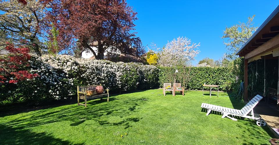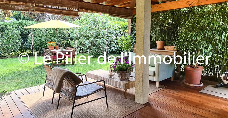 Grande maison de famille avec un beau jardin. – Le rez de chaussée propose un grand espace ouvert, cuisine salon et salle-à-manger. L’ensemble donne sur une terrasse protégée d’environ 30 m2, véritable salon d’été. – Le 1er étage offre 3 chambres et deux salles de bains – Le 2ème étage offre une chambre-bureau de 42 m2 Au sous-sol une pièce double de plus de 50 m2, naturellement éclairée et chauffée par le sol, et avec une salle de bains/WC. Un accès indépendant permet une utilisation sans déranger la famille occupante. Un bien rare sur le marché, permettant également d’héberger 3 voitures Un jardin de professionnel, tant ensoleillé que paysagé