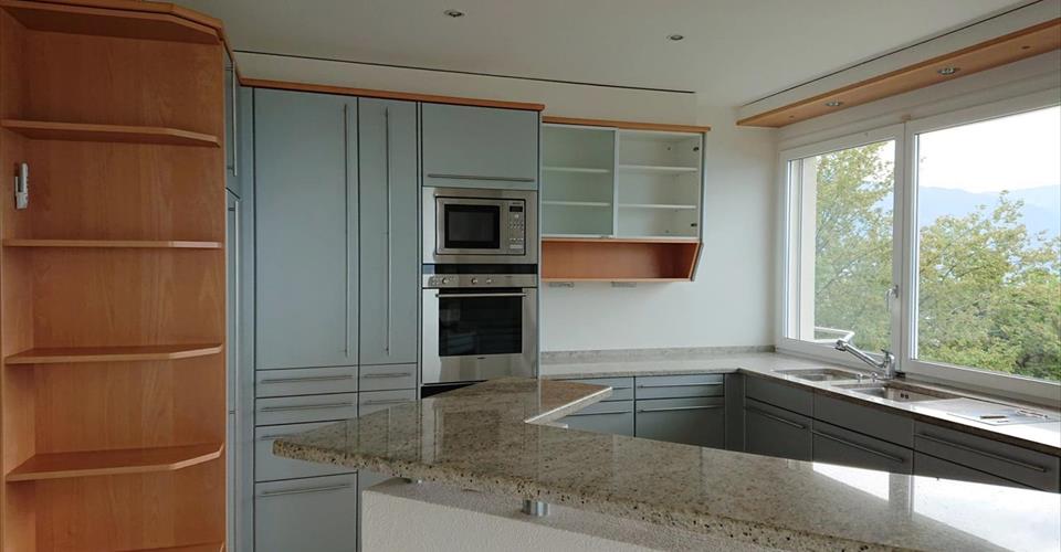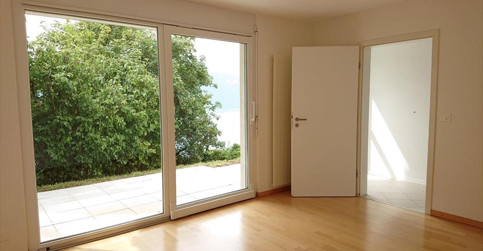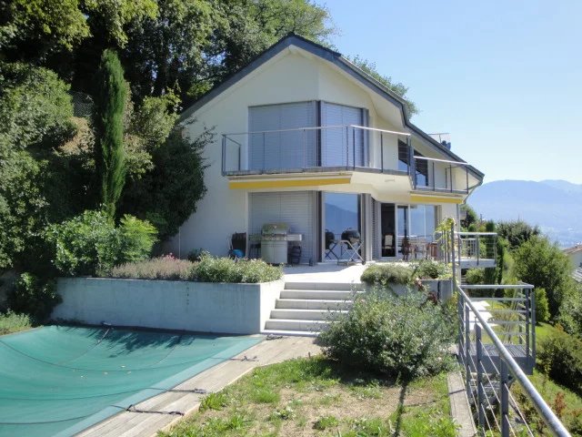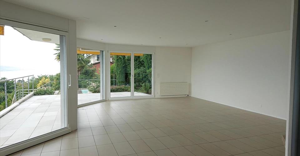 Villa individuelle avec vue panoramique sur le Léman Belle villa individuelle sur 3 niveaux jouissant d’une vue panoramique sur le lac, dans un environnement calme et verdoyant, composée comme suit : Étage – Hall d’entrée avec accès au garage – Deux chambres avec accès sur le balcon et vue sur le lac – Une salle de bains et un WC séparé Rez – Cuisine agencée et ouverte sur le séjour avec cheminée et accès sur la terrasse – Une chambre avec accès extérieur – Une salle de douche/WC Rez inférieur – Couloir desservant : – Trois chambres avec accès extérieur et entrée indépendante – Salle de douche/WC – Buanderie privée – Cave – Local technique Une piscine extérieure complète ce bien d’exception. Loyer : CHF 5’500.- / mois + charges individuelles.